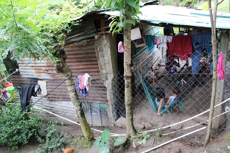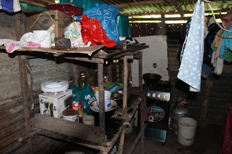 La vivienda está construida de material improvisado, con poco espacio, forrada de zinc y posee piso de tierra.