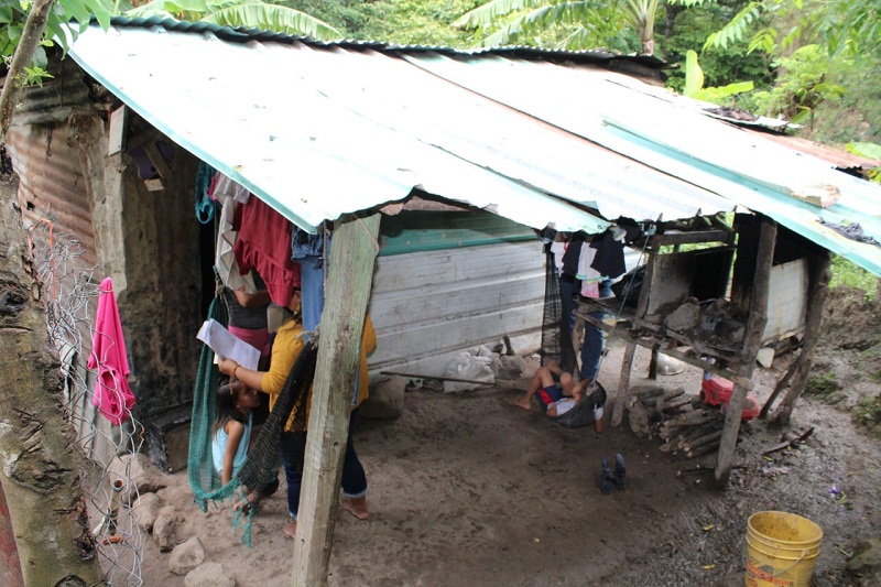La familia Herrera Muñoz, que vive en la comunidad de Majara Guarumal, presenta un cuadro de pobreza extrema, dependiendo de la agricultura de subsistencia y el apoyo de parientes.