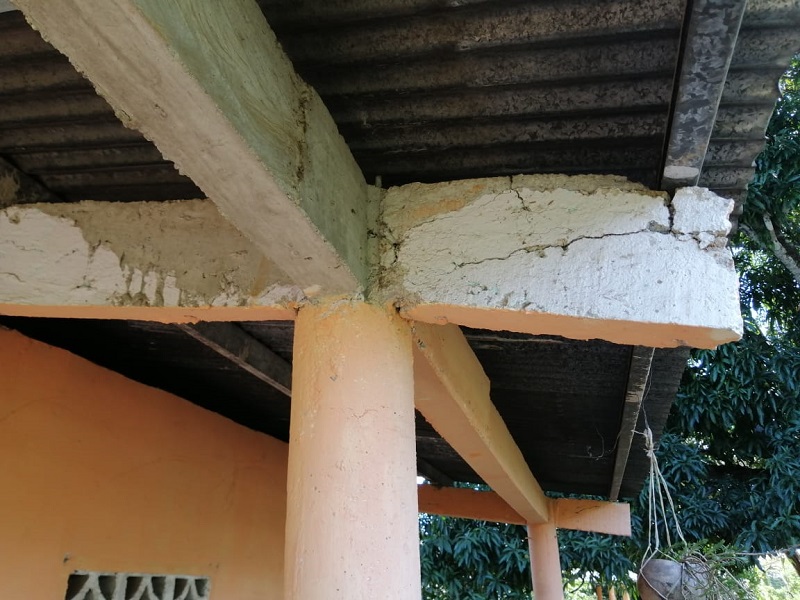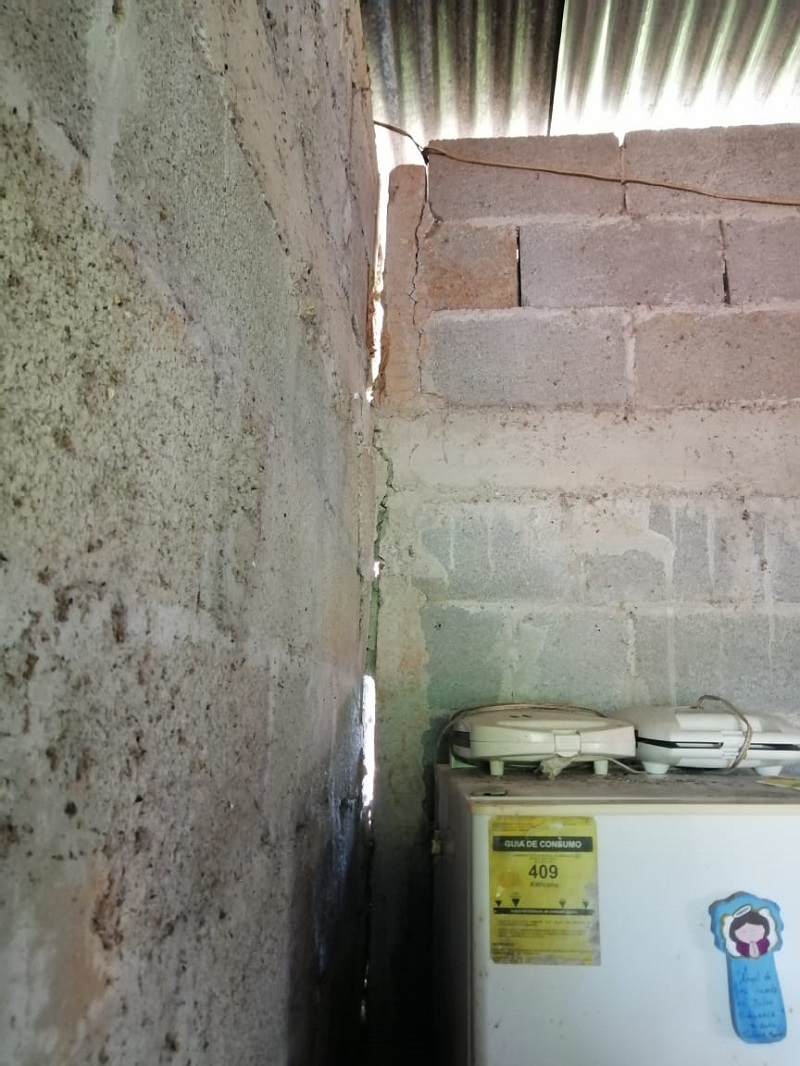 Las razones se sustentan por las grandes grietas que se observan en las paredes, debido a la falta de columnas y vigas, además que los caballetes y canes que soportan el techo están en mal estado.