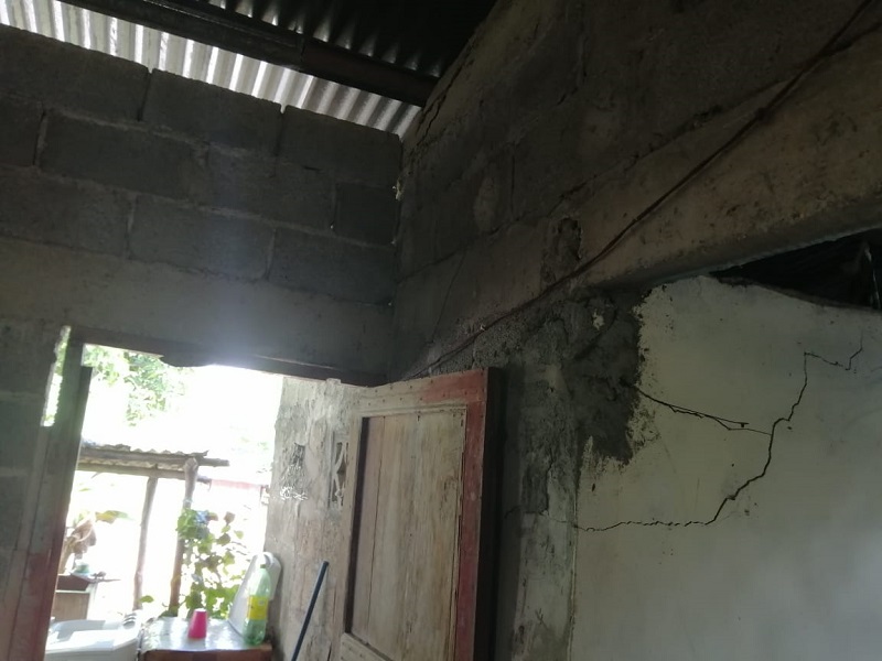 La casa está construida con paredes de bloque, techo de zinc notablemente deteriorado y piso rústico, el cual presenta grandes rajaduras.