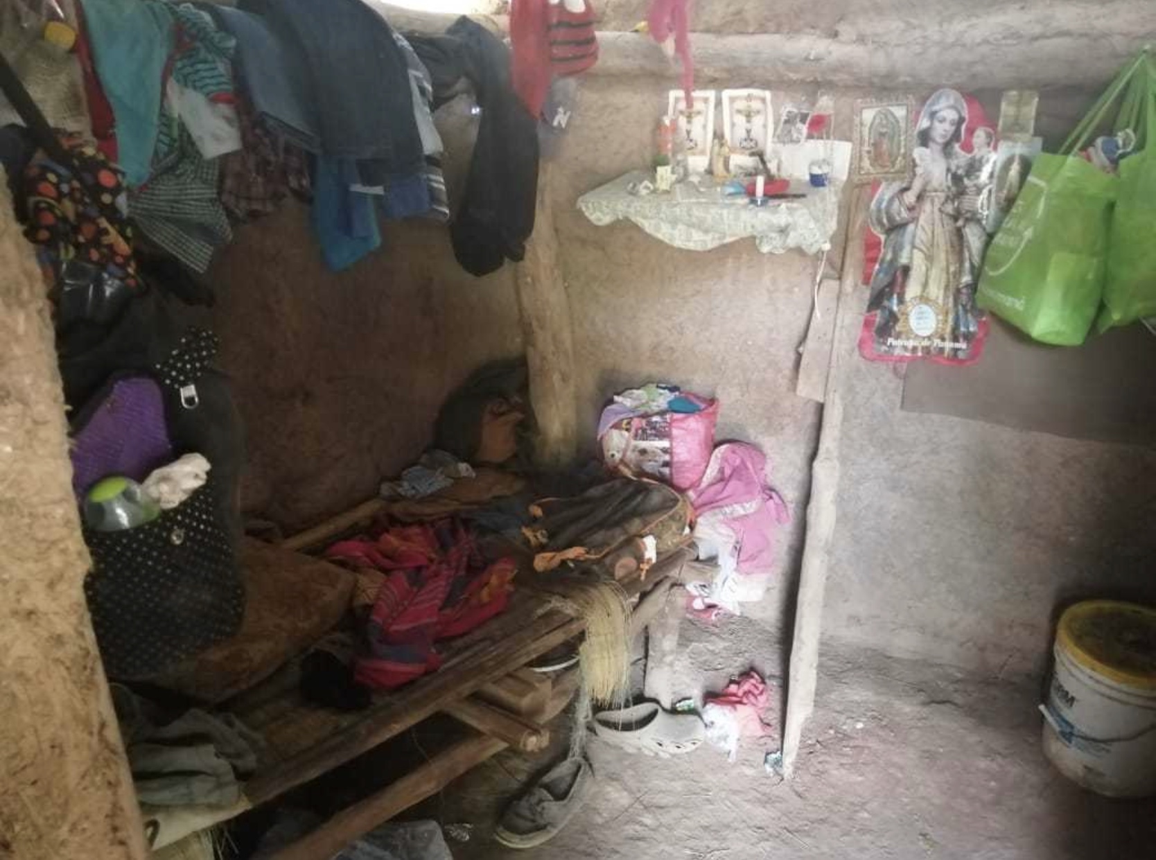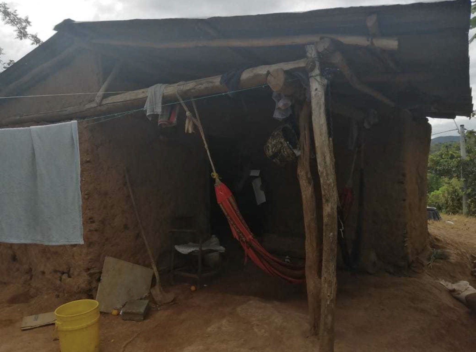 La vivienda es de quincha, techo con retazos de zinc y madera, piso de tierra, servicio de letrina, utilizando además el acueducto rural, velas y focos de mano durante la noche, lo que los ha mantenido durante años viviendo en malas condiciones.