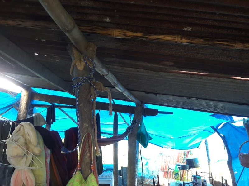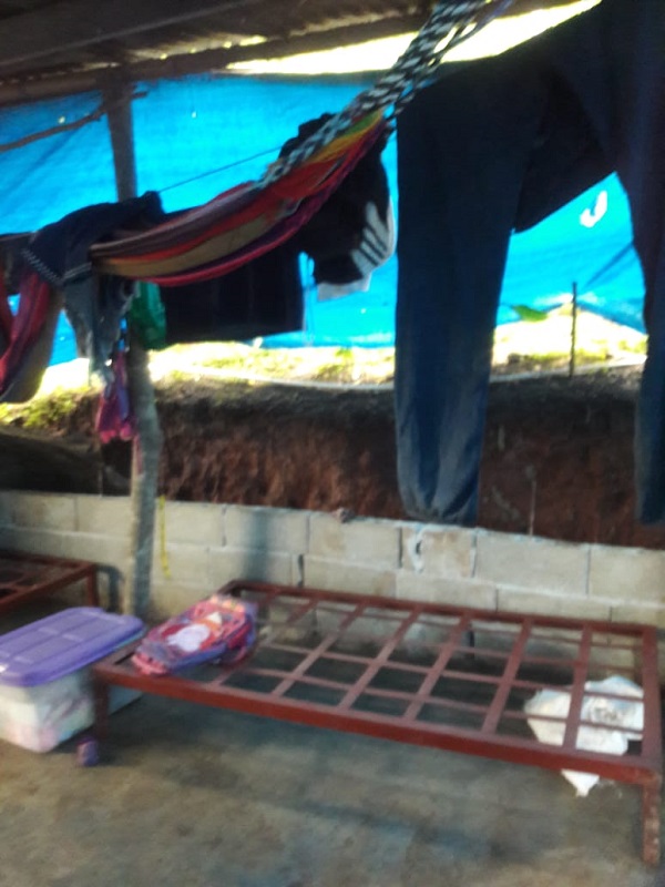 Además, las personas utilizan letrina, se alumbran con vela o linterna y se abastecen de agua de manera ilegal. El sustento del hogar se obtiene con los trabajos que realiza el adulto como ayudante de construcción o limpieza de lotes con machete, lo que se le ha hecho difícil en este tiempo de pandemia.