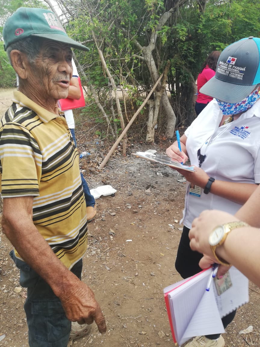 Panamá, 19 de mayo de 2020. Porfirio Vega Cortes, de 83 años, quien vive solo en el distrito de Guararé, en Los Santos, fue visitado por personal de la regional del Ministerio de Vivienda y Ordenamiento Territorial (Miviot), donde se evaluó su condición habitacional y social, para buscar las alternativas de ayuda.