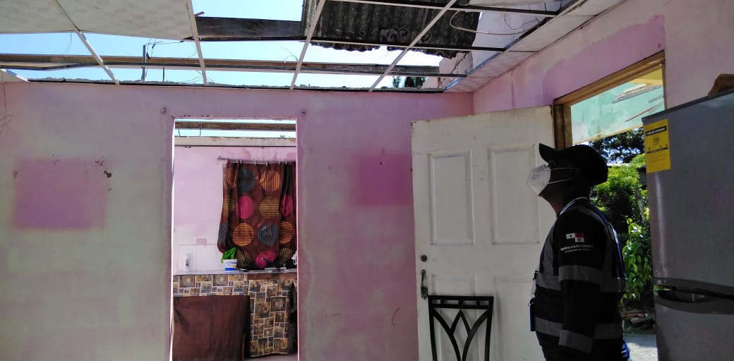 El representante del corregimiento de Portobelo, Mario Ortíz, señaló que los efectos de la Tormenta Eta se sintió con fuertes vientos en esta parte del país, al conocerse de los daños en las casas se acudió al Miviot para el apoyo.