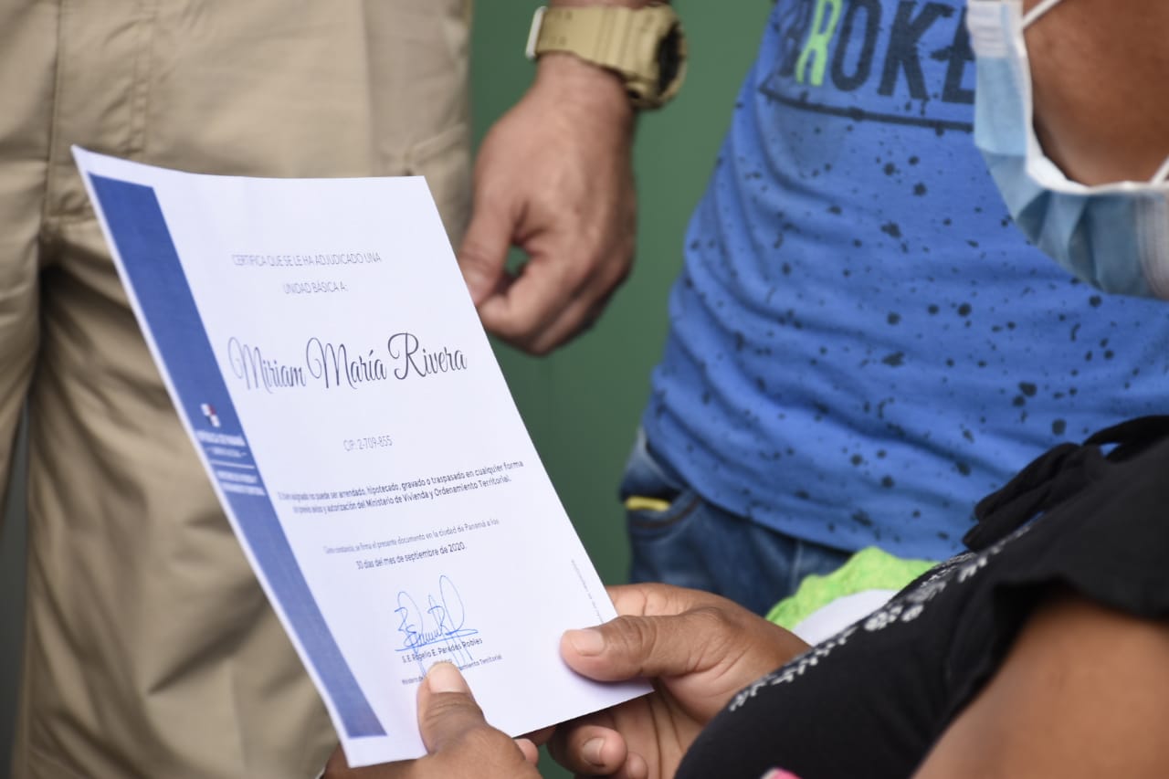 La beneficiaria en este distrito fue Miriam Rivera, de 38 años quien vive con su esposo Alexis Martínez de 41 años y sus cuatro hijos: Adrián, Alexis, Jonathan y Angely Martínez, de 17, 15, 9 y 4 años, respectivamente.