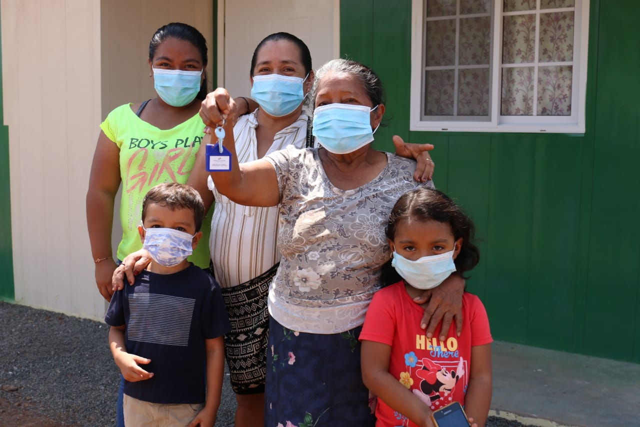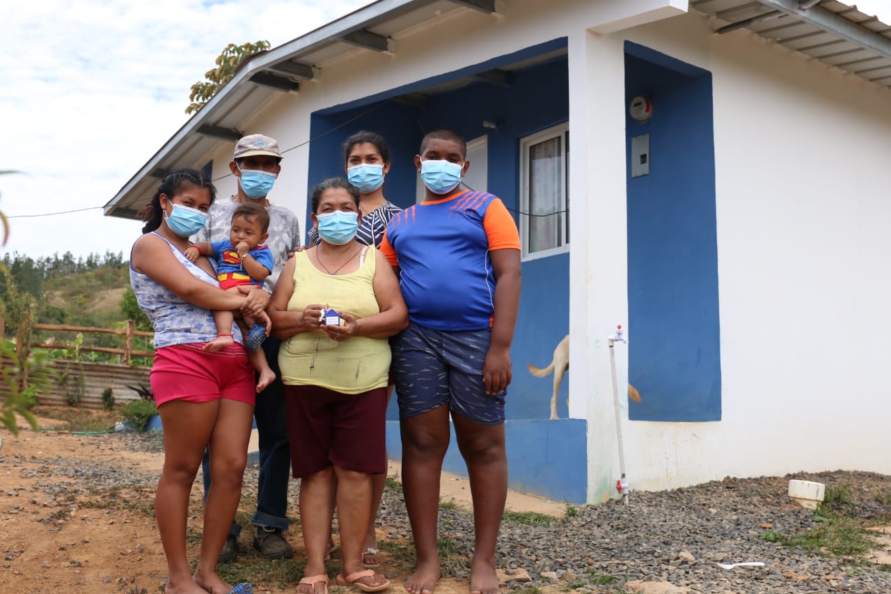 Panamá, 16 de abril de 2021. Once familias, que habitan en condiciones precarias en casas en mal estado en cinco distritos de la provincia de Veraguas, recibieron nuevos hogares confortables y seguros, así como remozamientos completos, mejorando la calidad de vida de sus miembros e higiene con eliminación de letrinas.