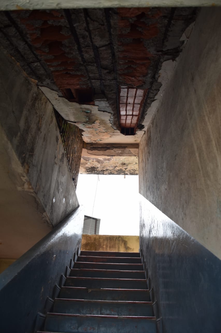 El inmueble privado 543, conocido como Chichoi, de cuatro pisos y 18 familias, está en trámite para determinar si se condena o rehabilita y se pudo corroborar que varios apartamentos están desocupados en la parte superior por el colapso de unas losas. La estructura fue construida hace 49 años.