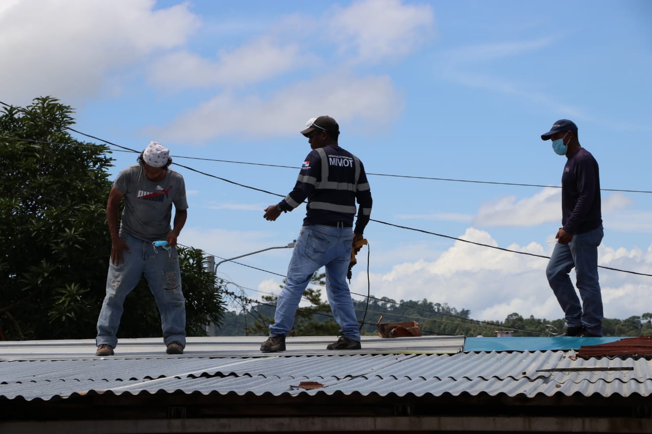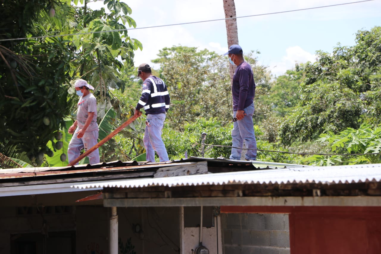 Panamá, 29 de julio de 2020. A seis residenciasen cuatro comunidades del distrito de Chepo, al este de la provincia de Panamá, cuadrillas del Ministerio de Vivienda y Ordenamiento Territorial (Miviot) instalaron un nuevo techo, luego que fueran desprendidos completa o parcialmente por una fuerte ventolina a principios de mes.