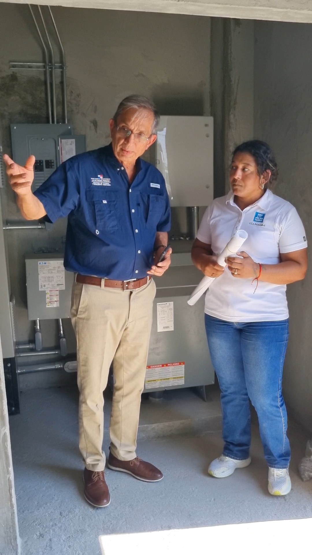 El ministro Jaime A. Jované C. se trasladó al complejo residencial, ubicado en el corregimiento de Vacamonte, donde pudo observar los tanques que permitirán almacenar los miles de galones de agua que abastecerán a los habitantes y también se reunió con el gerente de obra, Edwin Viales y la ingeniera superintendente, Idalia Fernández.