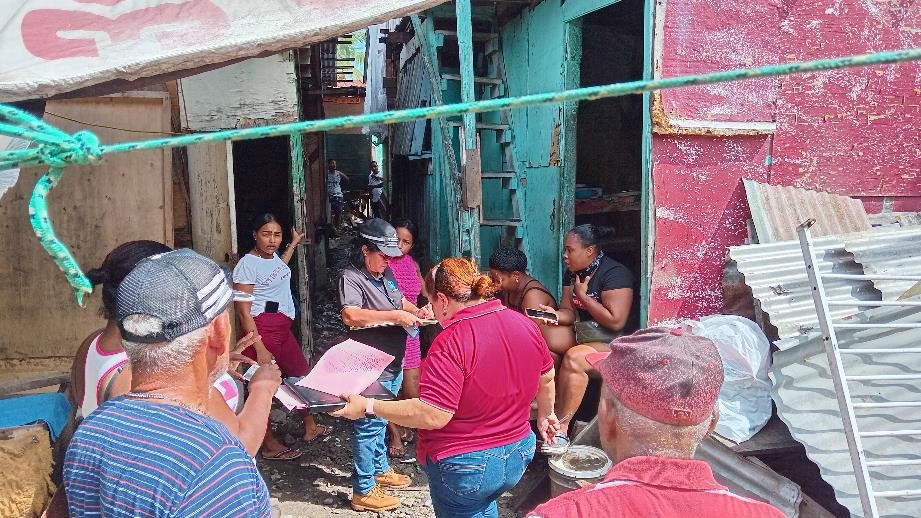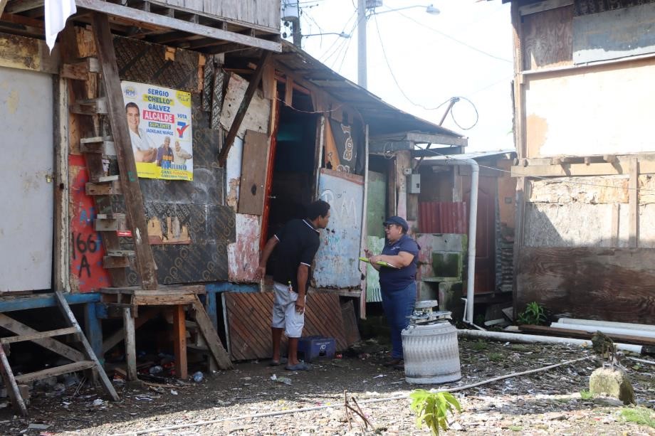Panamá, 25 de julio de 2024. Un censo realizó este jueves un equipo técnico y social del Ministerio de Vivienda y Ordenamiento Territorial (Miviot) en Nuevo Amanecer, un sector de riesgo social en el corregimiento de Curundú, en el distrito de Panamá, donde las personas llevan cerca de una década viviendo en la precariedad.