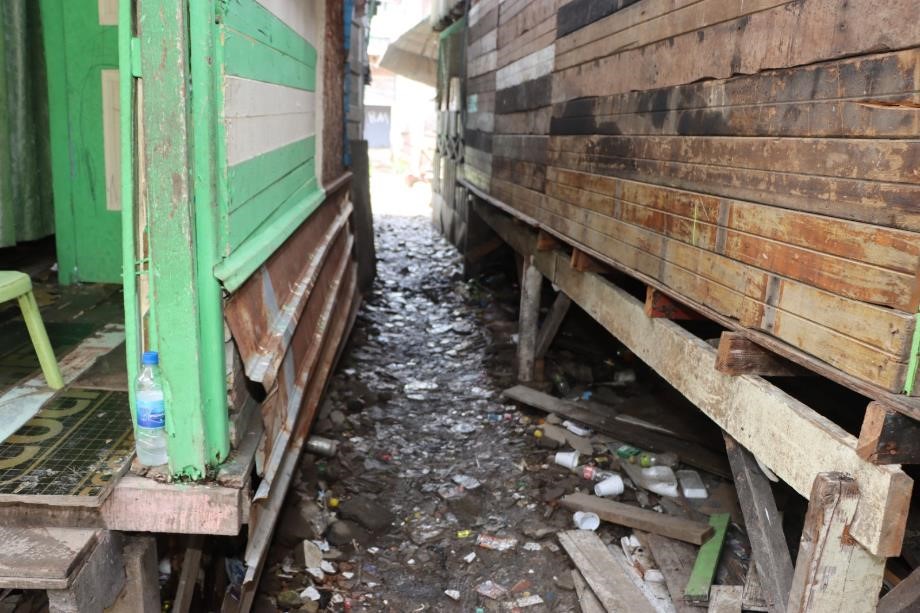 Durante el recorrido, se observó que las viviendas están construidas con material endeble, madera vieja, madera comprimida, hojas de zinc y en su entorno hay basura, aguas negras y carecen de espacios verdes por el hacinamiento. Algunos cuartos tienen dos niveles de madera, otros se muestran deshabitados y con peligro de colapso.
