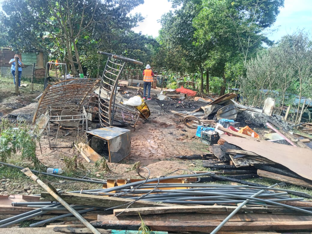 Navarro indicó que la causa del siniestro se debió a una basura que estaba quemando cerca del área que usaban de cocina, lo que calentó el tanque de gas provocando este incendio que los dejó sin enseres y sin un lugar donde vivir.