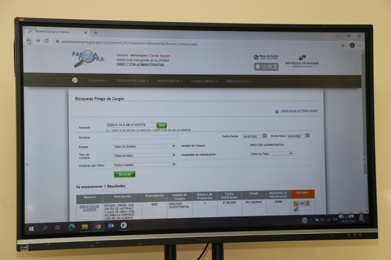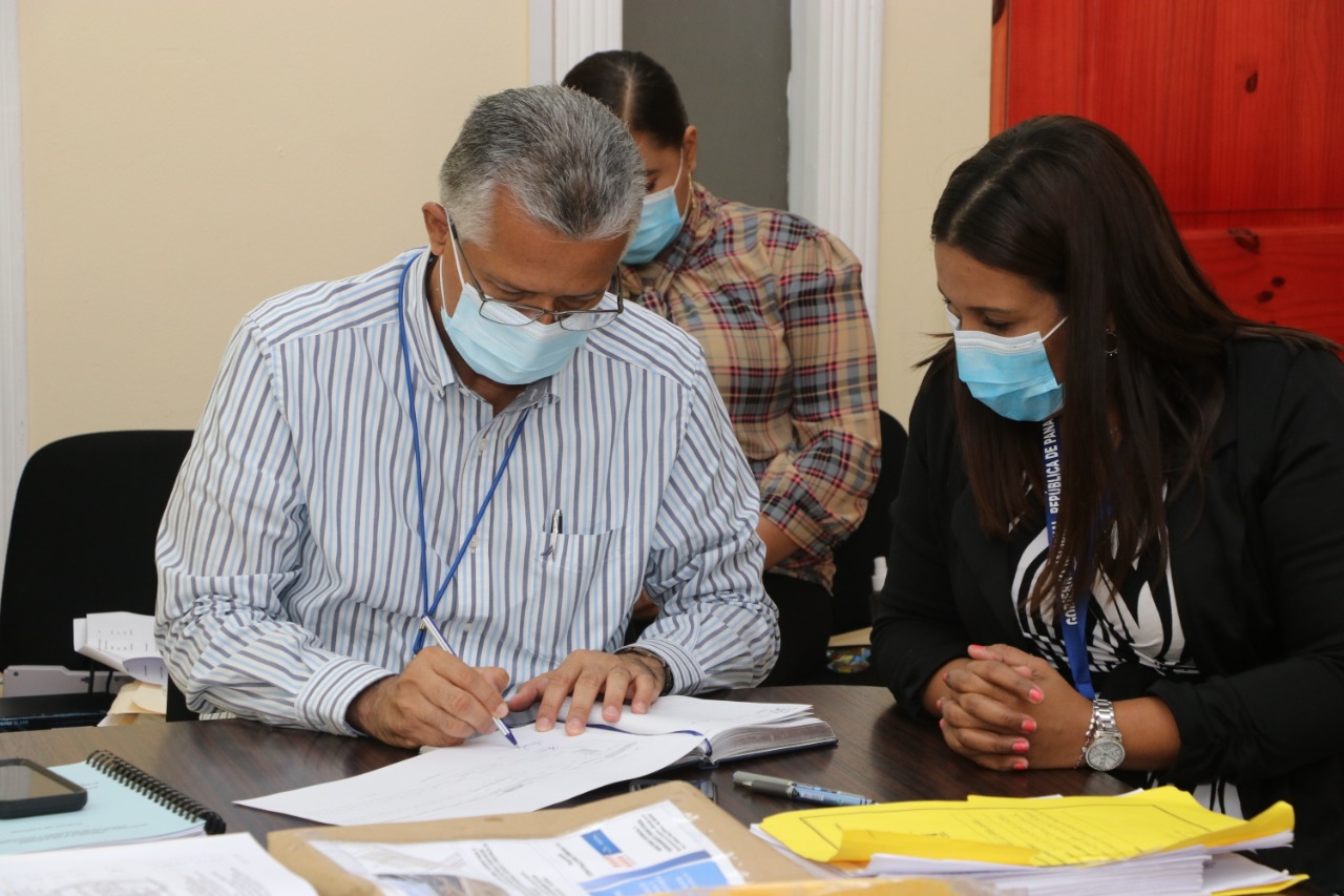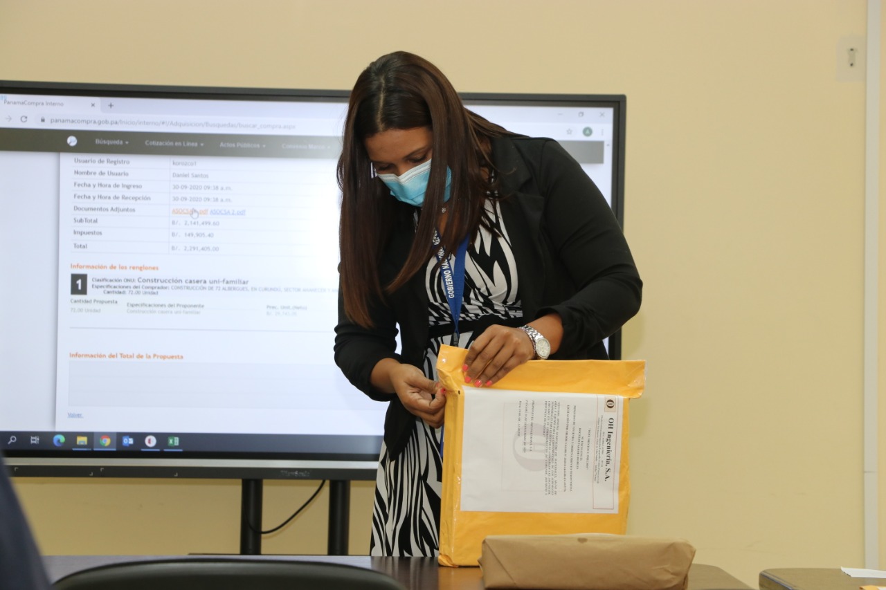 Panamá, 1 de octubre de 2020. La apertura de sobres de la licitación pública para el estudio, diseño, suministro de materiales, mano de obra y equipo para la construcción de albergues temporales para los sectores El Amanecer y El Anochecer, ubicados en el corregimiento de Curundú, distrito de Panamá, se realizó siguiendo las medidas sanitarias por la pandemia de la Covid-19.