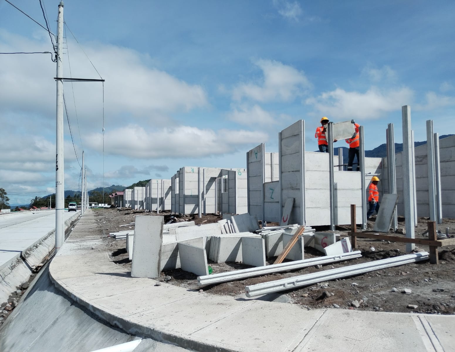 A la fecha, se llevan levantadas más de 12 viviendas prefabricadas y se trabaja en el resto de las estructuras, detalló el ministro de Vivienda y Ordenamiento Territorial (Miviot), Rogelio Paredes, quien ha dado seguimiento a esta obra residencial.