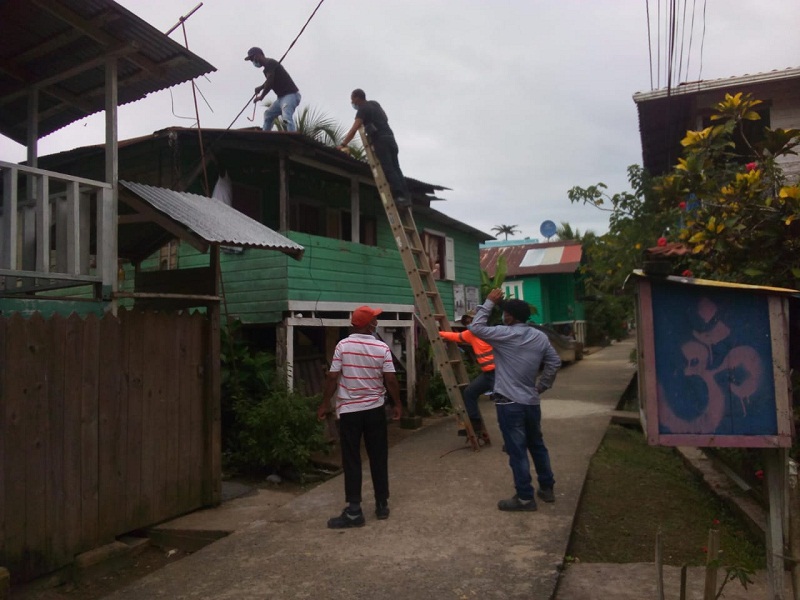 Panamá, 30 de marzo de 2021. Con el apoyo de las autoridades locales, cuadrillas del Ministerio de Vivienda y Ordenamiento Territorial (Miviot) iniciaron los trabajos de mejoras a las residencias de cuatro familias de bajos recursos económicos residentes en el corregimiento de Bastimentos, en la provincia de Bocas del Toro.