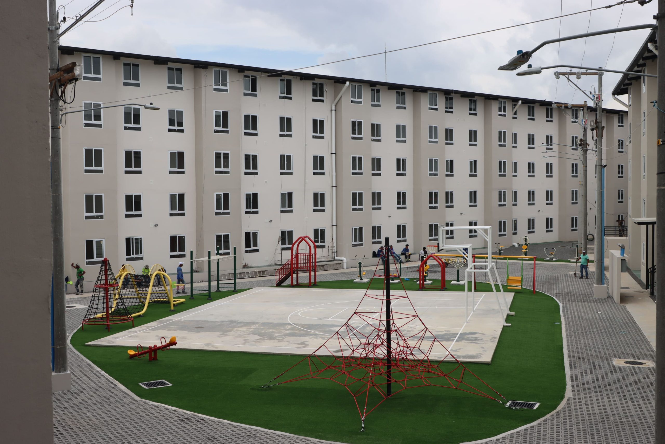 Serrano, dijo que es un proyecto integral con todas las normas de seguridad conformado por 5 torres con 400 apartamentos de 2 y 3 recámaras, 87 estacionamientos incluidos para personas con algún grado de discapacidad, área recreativa, planta de tratamiento, sistema de bombeo y tanque de reserva de 55 mil galones de agua.