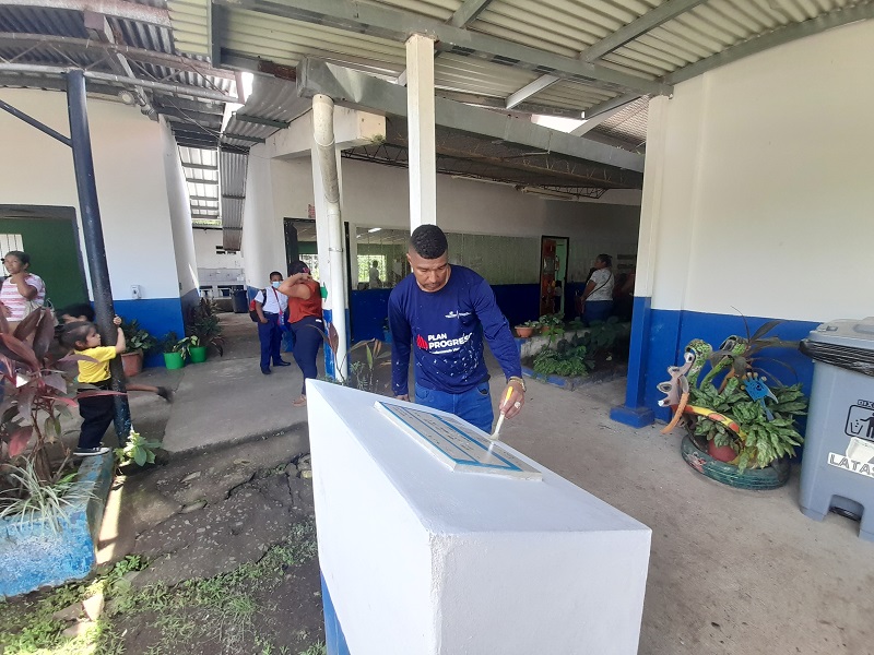 La entidad contribuye con el apoyo en mano de obra especializada, con el objetivo de mejorar las condiciones de las estructuras de los colegios, a través del programa CON Escuelas, liderado por el Ministerio de Educación (Meduca).