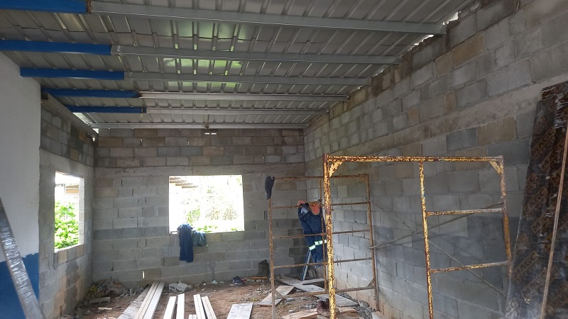 Los materiales son proporcionados por el Meduca, mientras que el Miviot colabora con la mano de obra para la construcción de las aulas completas con cielo raso, baldosa, sistema eléctrico y pintura.