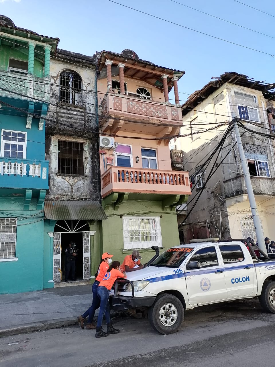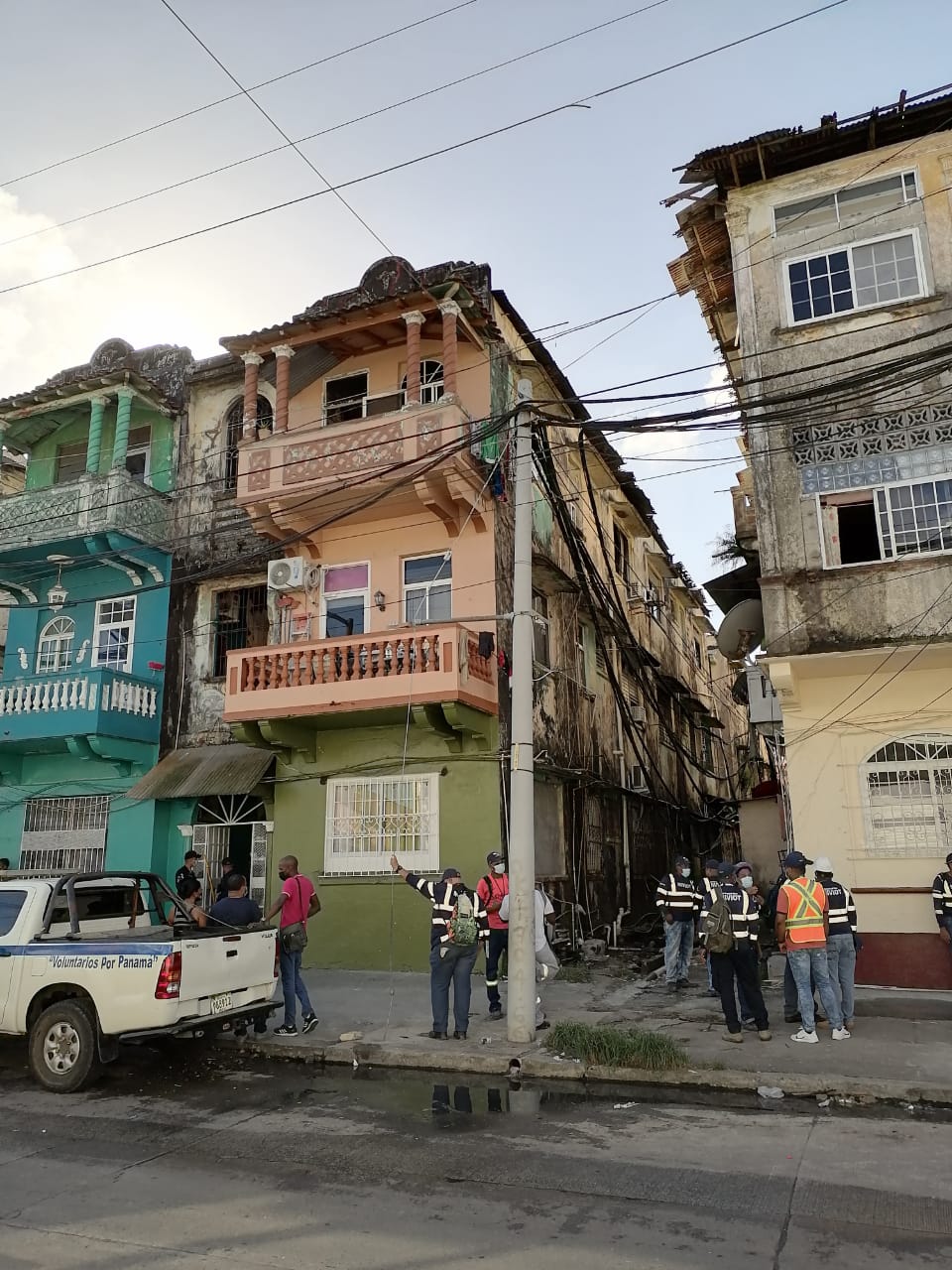 Panamá, 8 de enero de 2021. Doce familias, ocupantes del edificio Casa 8057, localizado en calle 10, entre las avenidas Meléndez y Santa Isabel, en el Casco Antiguo de la ciudad de Colón, fueron reubicadas al resultar afectadas directa e indirectamente por un incendio la noche de este jueves.