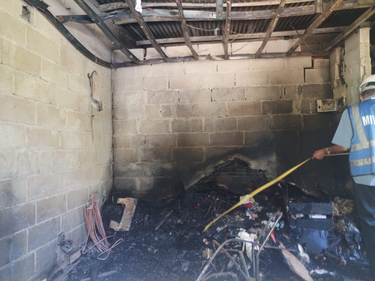 El fuego que inició en la recámara de la casa construida de bloque sin repellar, dejó daños parciales en el techo, cielo raso, puertas y ventanas, donde además hubo pérdidas materiales de enseres y mobiliarios.