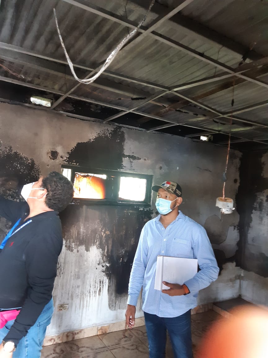Panamá 29 de junio de 2020. Personal de la Dirección de Coordinación Nacional de Proyectos y Asuntos Comunitarios (Conapro) del Ministerio de Vivienda y Ordenamiento Territorial (Miviot) en la provincia de Chiriquí atendió este domingo un caso de contingencia en el corregimiento de David Sur en el distrito de David, donde una residencia fue consumida por las llamas.