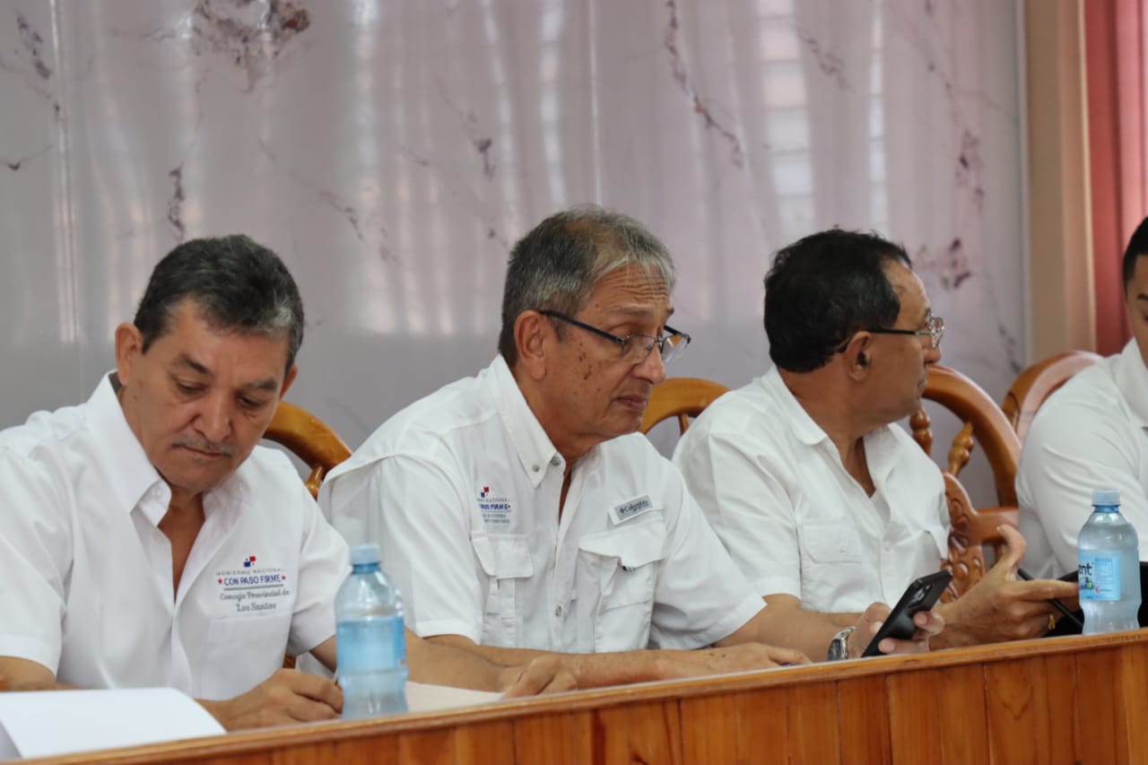 El jefe de la cartera de Vivienda estuvo acompañado de la asesora legal, Idelcarmen de Palma; la directora de Control y Orientación del Desarrollo, Carla Salvatierra y el director regional de Los Santos, Juan Pedro Samaniego, estos dos últimos respondieron a preguntas hechas por los representantes de corregimientos y alcaldes de los distritos.