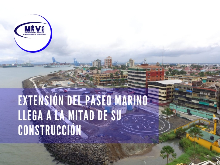 Un 50% de avance físico, presentan los trabajos de construcción en la extensión del nuevo Paseo Marino y otras obras complementarias que conforman el proyecto Renovación Urbana de Colón, que ejecuta el Ministerio de Vivienda y Ordenamiento Territorial (Miviot).