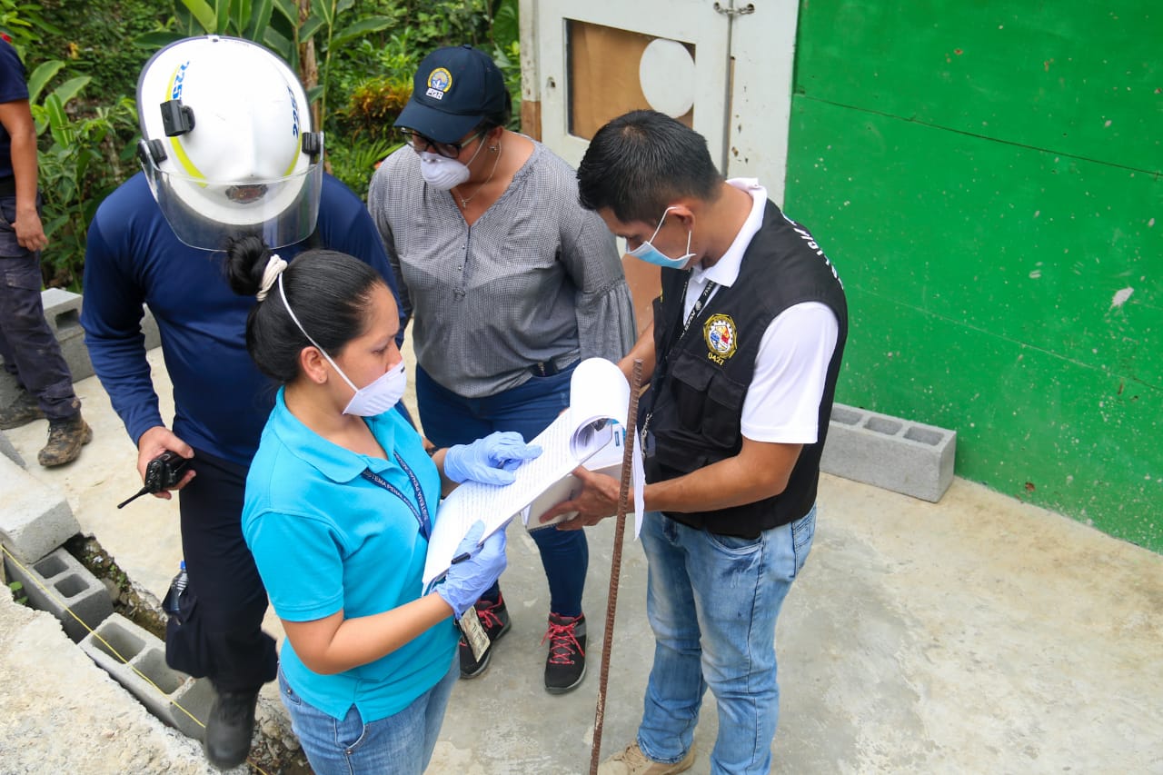 Panamá, 5 de mayo de 2020. El Ministerio de Vivienda y Ordenamiento Territorial (Miviot) realiza las coordinaciones para buscar un terreno donde construir las viviendas a las familias de la comunidad de Villa María, en el corregimiento de Ernesto Córdoba, en Panamá Norte, que fueron afectadas y desalojadas de un cerro este martes por el deslizamiento de tierra e inminente peligro en el área.