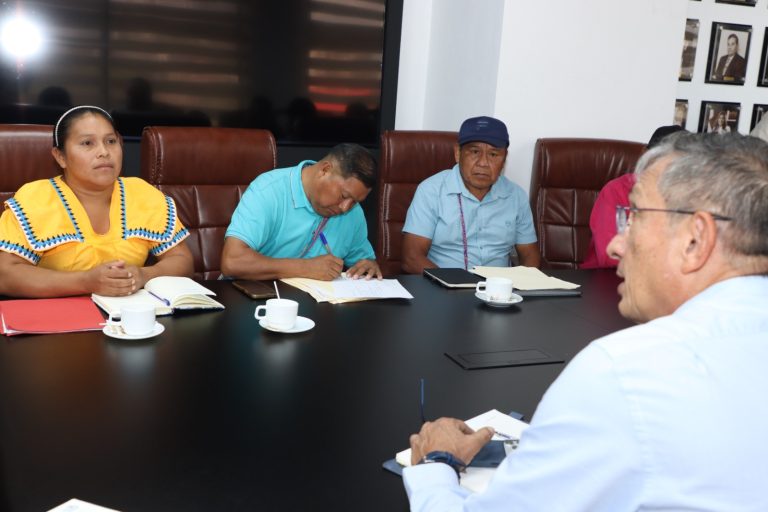 PANAMÁ, 17 DE ABRIL DE 2026. Con el objetivo de dar respuesta oportuna a las necesidades de vivienda en las zonas de difícil acceso, el Ministro de Vivienda y Ordenamiento Territorial, Jaime A. Jované C., lideró esta mañana una reunión de trabajo con una delegación de representantes de corregimiento de la Comarca Ngäbe Buglé en el Despacho Superior.