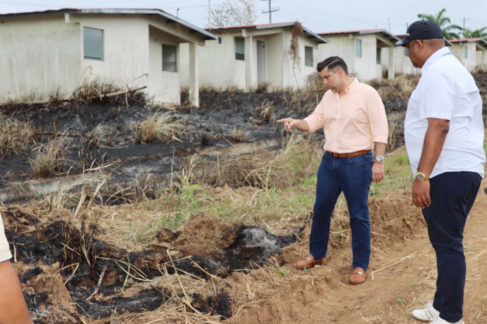 El viceministro de Vivienda, Fernando Méndez, inspeccionó junto al director regional, Ariel Guevara, la urbanización, localizada en el corregimiento de Barrio Colón, en el distrito de La Chorrera, que se encuentra sin concluir, con las casas en estado de deterioro y en sus alrededores con maleza recién cortada.