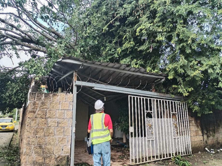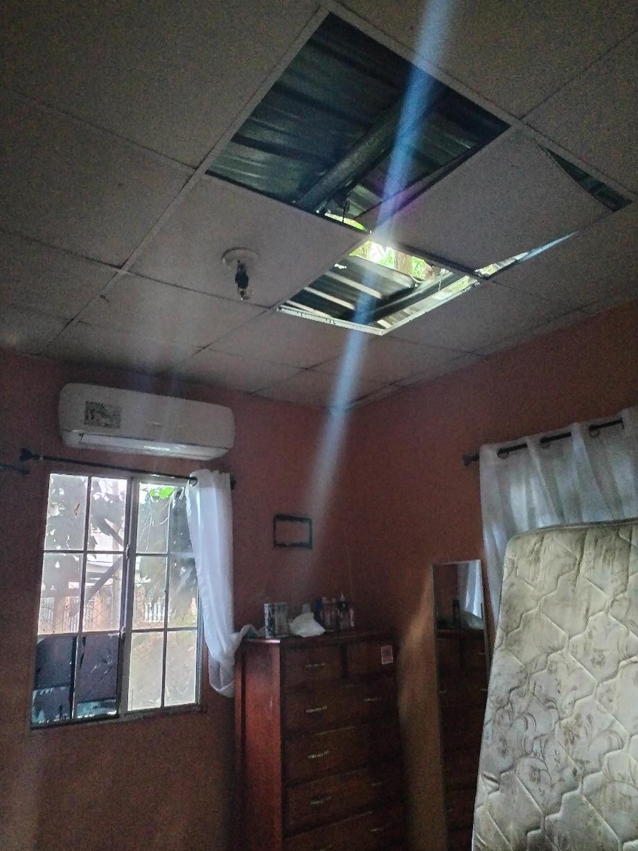 Personal técnico y social del Ministerio de Vivienda y Ordenamiento Territorial de la regional de Las Mañanitas, se trasladaron hasta el Sector 10 de Belén en el corregimiento de Tocumen donde se inspeccionó la vivienda de Mirna Bonilla Flores, de 40 años, habitada por 5 adultos y un menor, la cual sufrió daños en el techo y parte de la pared de uno de los cuartos, cocina y área de garaje a causa de la caída de un árbol de mango.