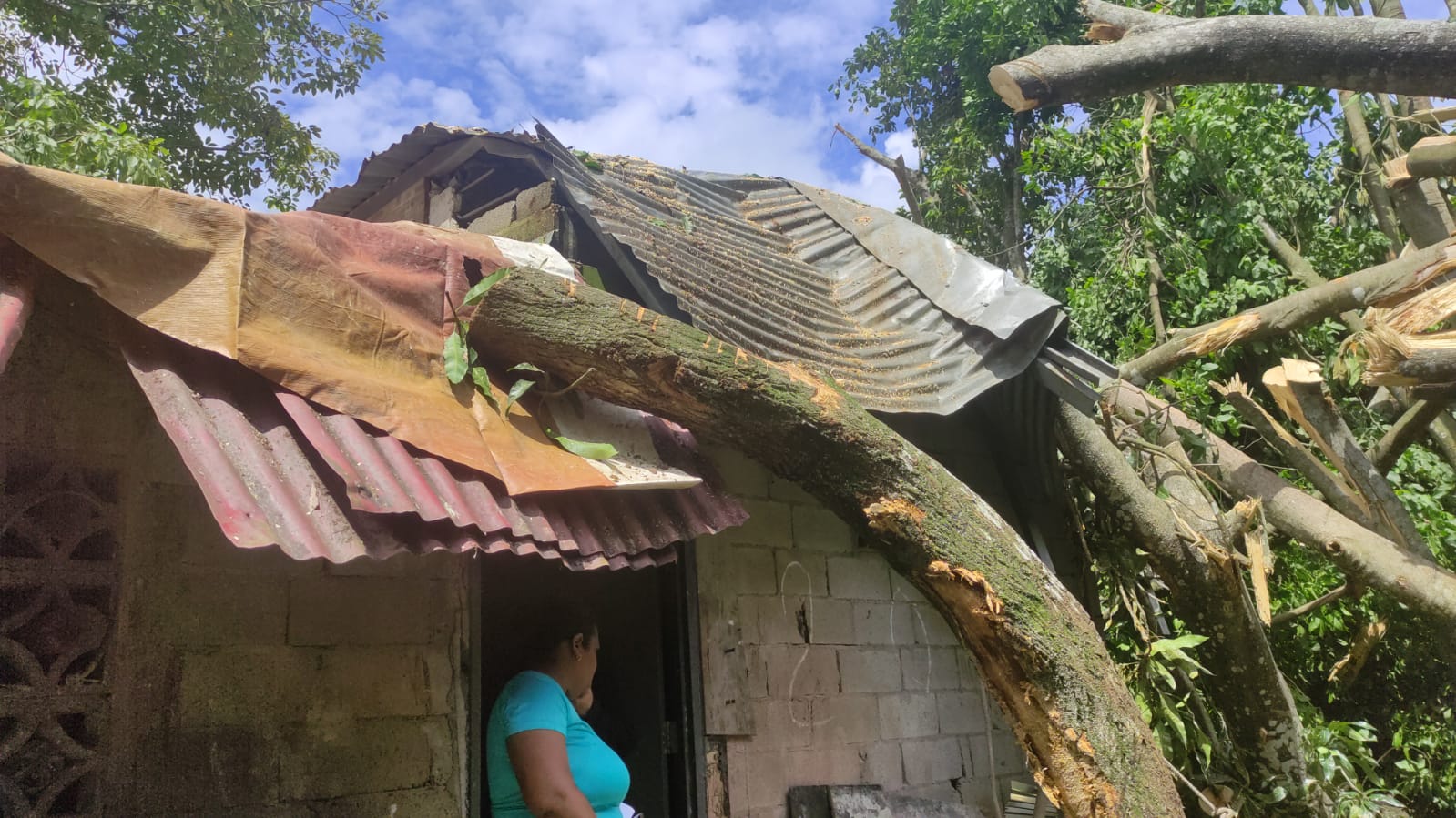En el sector 4 del corregimiento de 24 de Diciembre, se atendió la familia de Victor Soto, de 44 años, conformada por dos adultos y tres menores, cuya residencia construida con materiales permanente sin repellar, le cayó un árbol de mamón que causó graves daños en sus estructura.