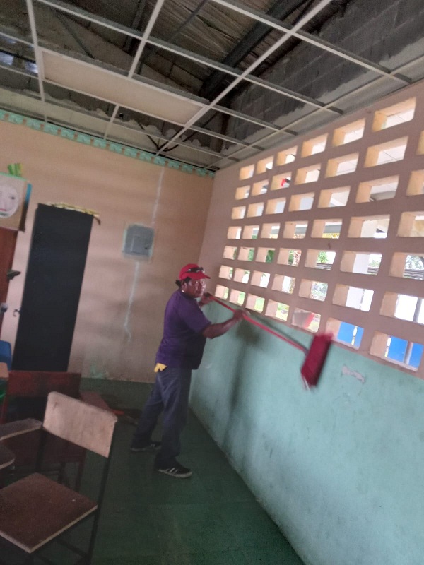 Detalló que entre los trabajos a realizarse en las escuelas están limpieza de áreas verdes y guano de murciélagos, desmonte del cielo raso y reparaciones menores de electricidad, plomería, pintura en general y limpieza de áreas verdes.