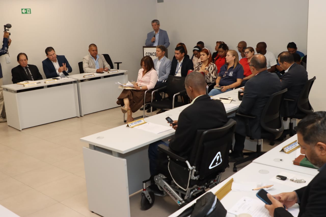 Panamá, 28 de julio de 2023. El ministro encargado de Vivienda y Ordenamiento Territorial (Miviot), José Batista, participó en el Consejo Municipal del distrito de San Miguelito, provincia de Panamá, donde explicó aspectos técnicos y competencia en temas de desarrollo urbanístico.