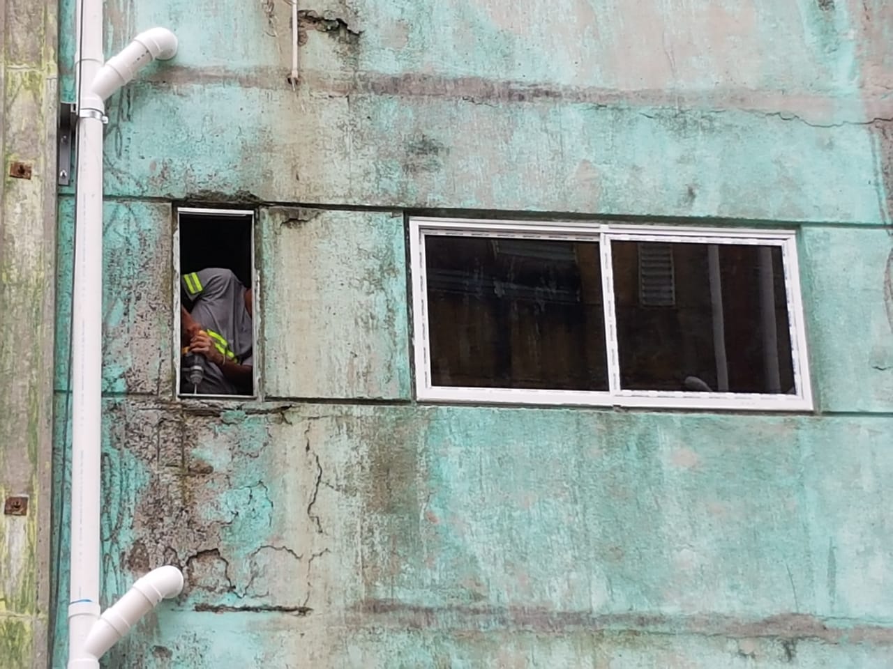 Las obras de acondicionamiento que desarrollan los equipos de trabajo en estos momentos, son: instalación de las nuevas estacas para los tajantes sanitarios y pluviales, cambio y colocación de las nuevas ventanas, instalación de nuevos inodoros, construcción de nuevos cuartos para el sistema de bombeo de agua potable, para cada edificio.