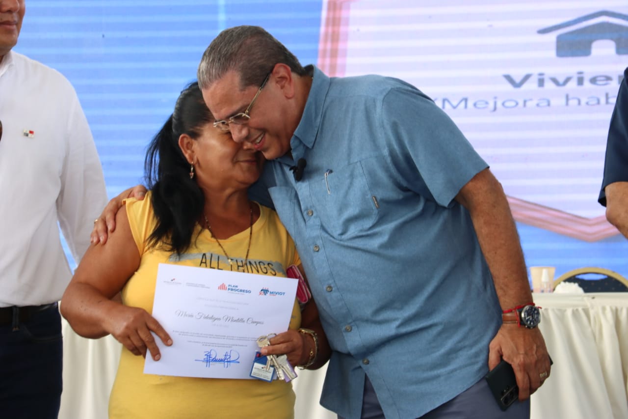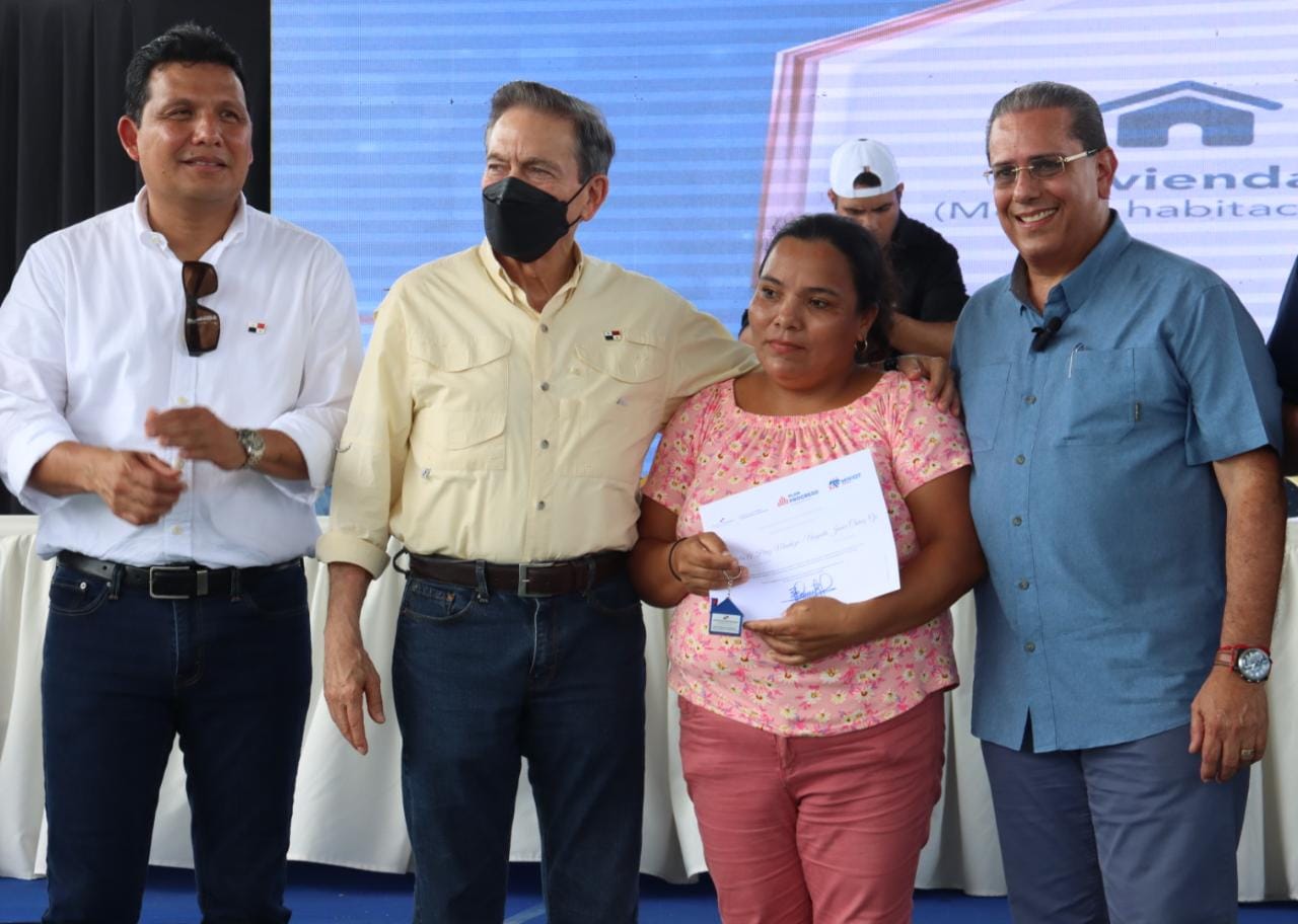 En el acto de la Gira de Trabajo Comunitario (GTC) en esta región, el presidente de la República, Laurentino Cortizo Cohen, en compañía del ministro de Vivienda y Ordenamiento Territorial (Miviot), Rogelio Paredes, entregó las llaves de los nuevos hogares a los beneficiarios