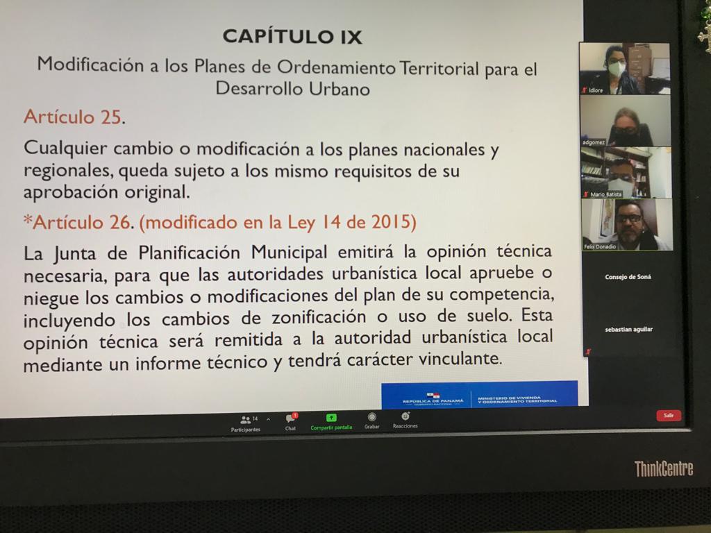 “Según la Ley 14 de 21 de abril de 2015 en cada municipio se establecerá la Junta de Planificación Municipal, la cual le corresponderá participar en la elaboración, ejecución y modificación de los planes de ordenamiento territorial, incluyendo los cambios de zonificación o de uso de suelo a nivel local”, explicó Loré.