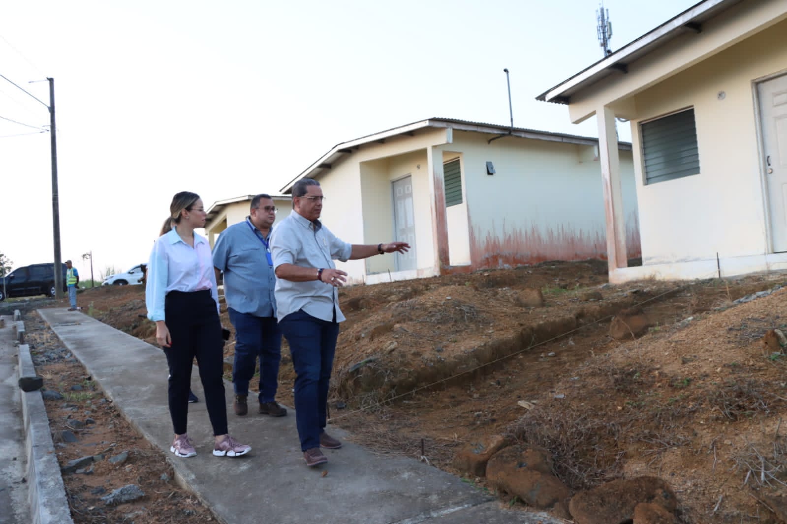 El titular de esta Cartera quien estuvo acompañado por la viceministra de Vivienda, Daniela Martínez y la gobernadora en esa provincia Sindy Smith, realizó un recorrido e inspección por las viviendas que se encuentran construidas y por los terrenos que deben ser adecuados, por la empresa contratista para evitar.