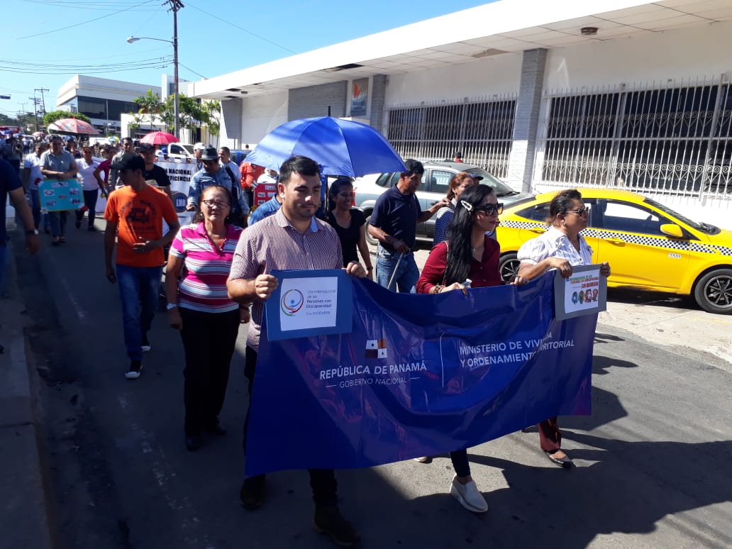 Panamá, 4 de diciembre de 2019. Con el objetivo de apoyar la política de inclusión social, colaboradores del Ministerio de Vivienda y Ordenamiento Territorial (Miviot) de la provincia de Veraguas se unieron a la caminata en conmemoración del Día Internacional de las Personas con Discapacidad, organizada por la Secretaría Nacional de Discapacidad (Senadis).