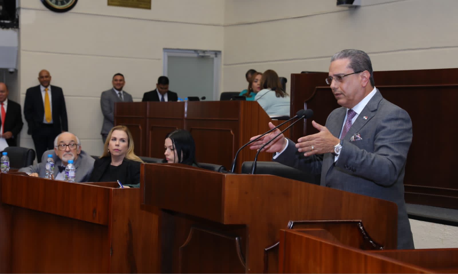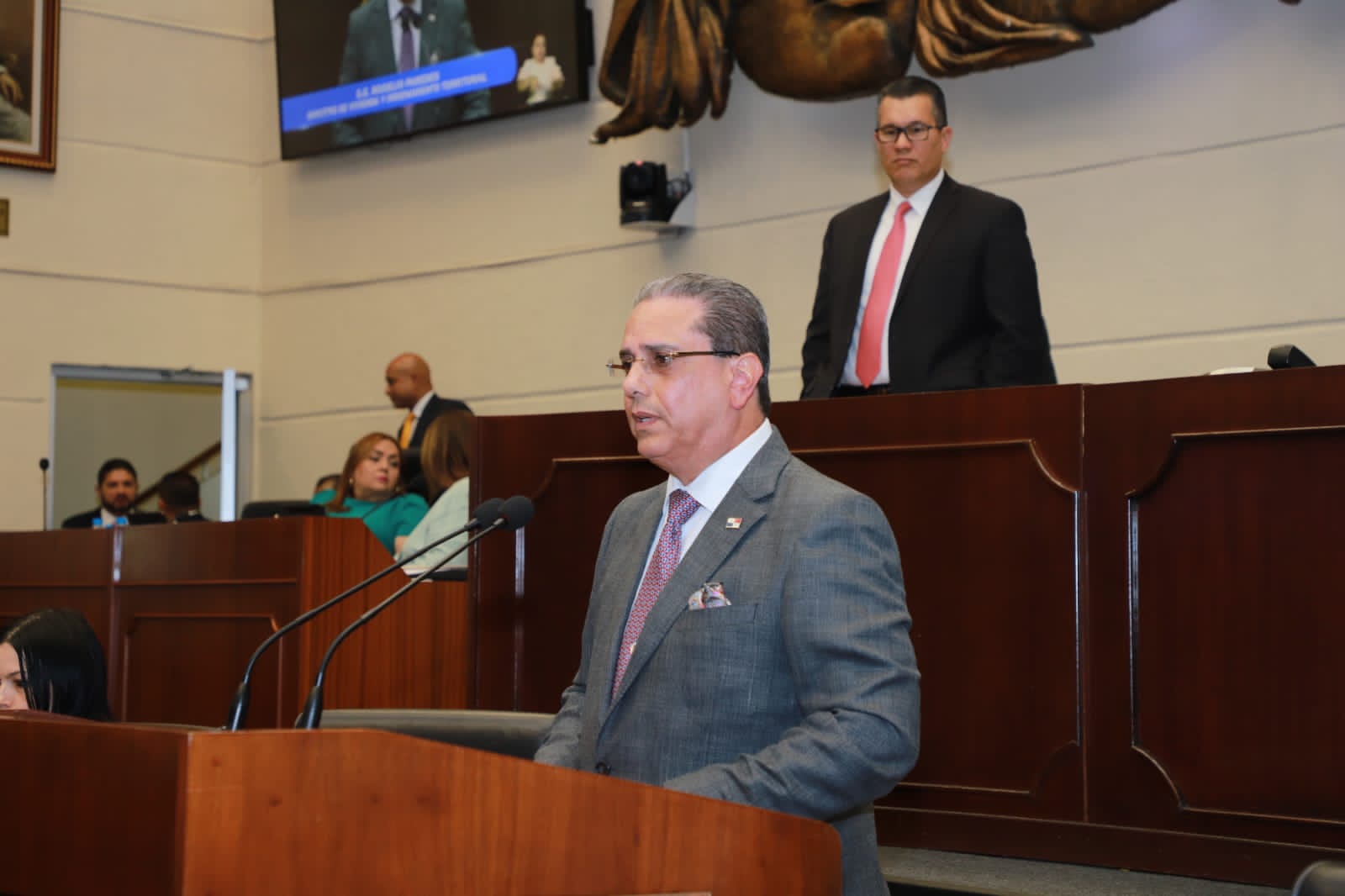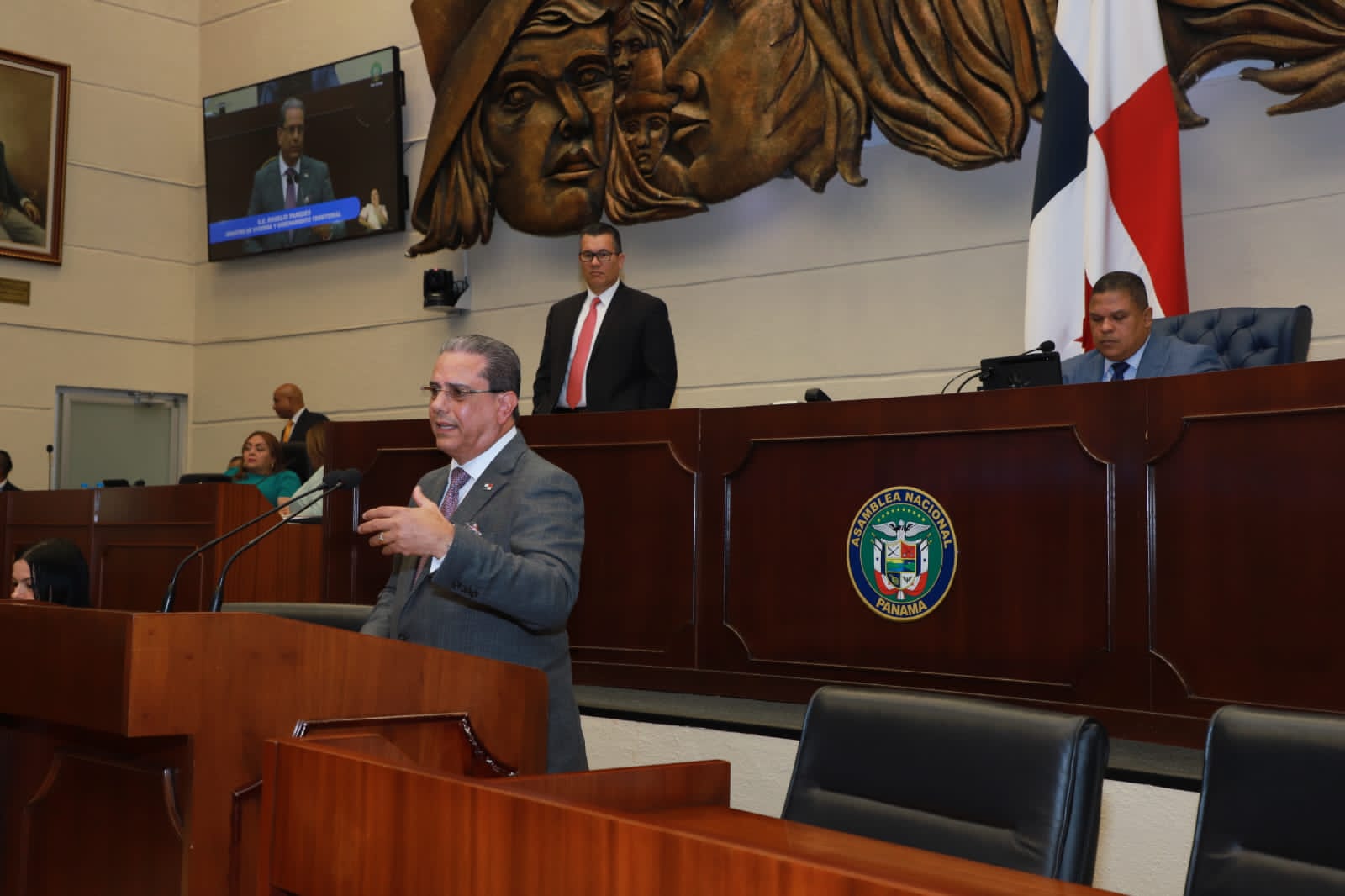 El titular del Miviot compareció ante el Pleno de la Asamblea, en compañía de Elisa de Suárez, miembro del Consejo Nacional de Promotores del Vivienda; Gabriel Diez, de la Cámara Panameña de la Construcción y Cristine Gerbaud, del Ministerio de Economía y Finanzas, donde respondió y aclaró interrogantes de algunos diputados.