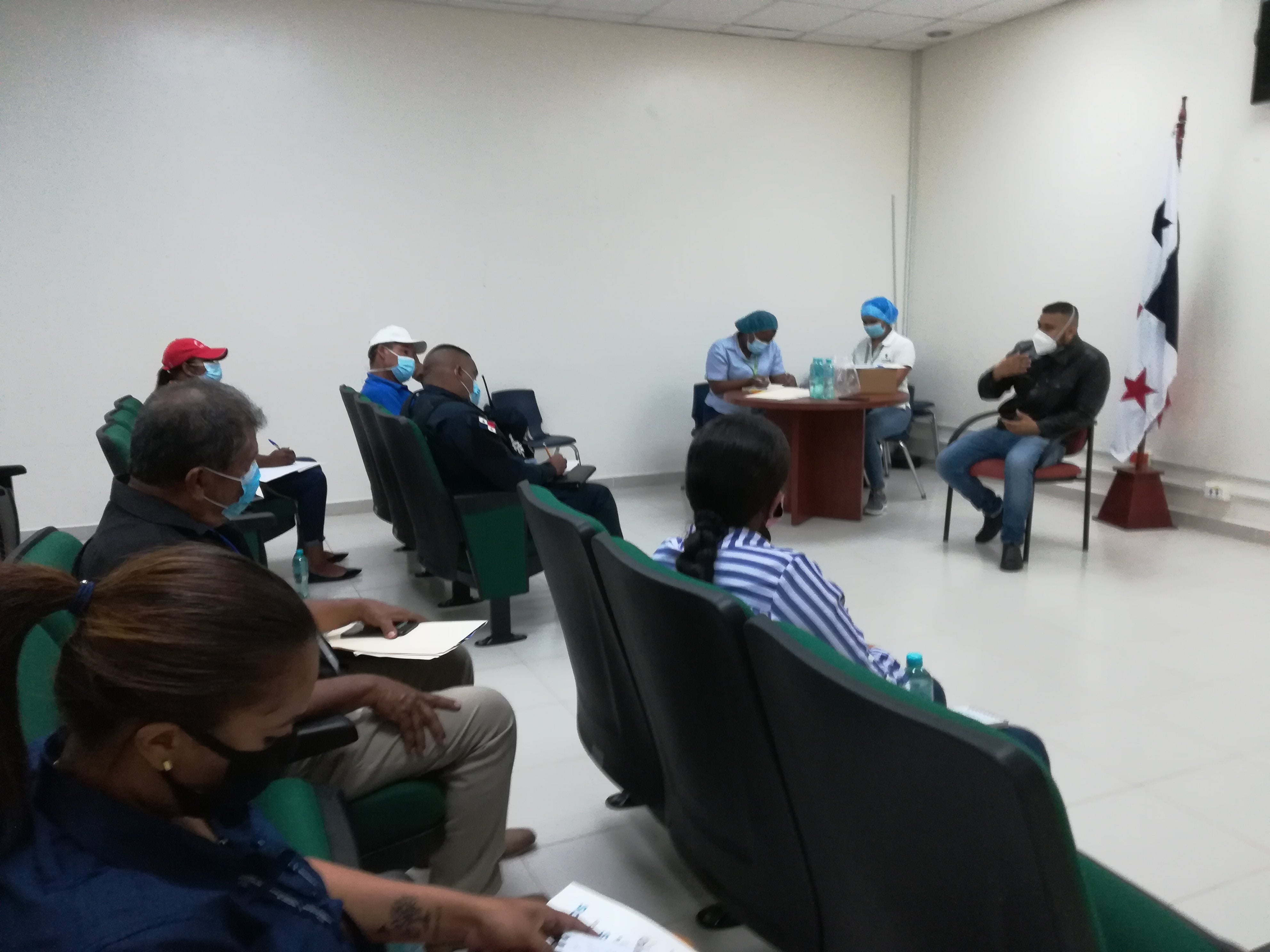 Panamá, 28 de mayo de 2020. A fin de coordinar el apoyo de la institución en el operativo de limpieza que se realizará a mediados del mes de junio en Las Garzas, en el distrito de Panamá, personal de la oficina del Ministerio de Vivienda y Ordenamiento Territorial (Miviot) de Mañanitas participó en la reunión con las autoridades del Minsa Capsi y la junta comunal del corregimiento.