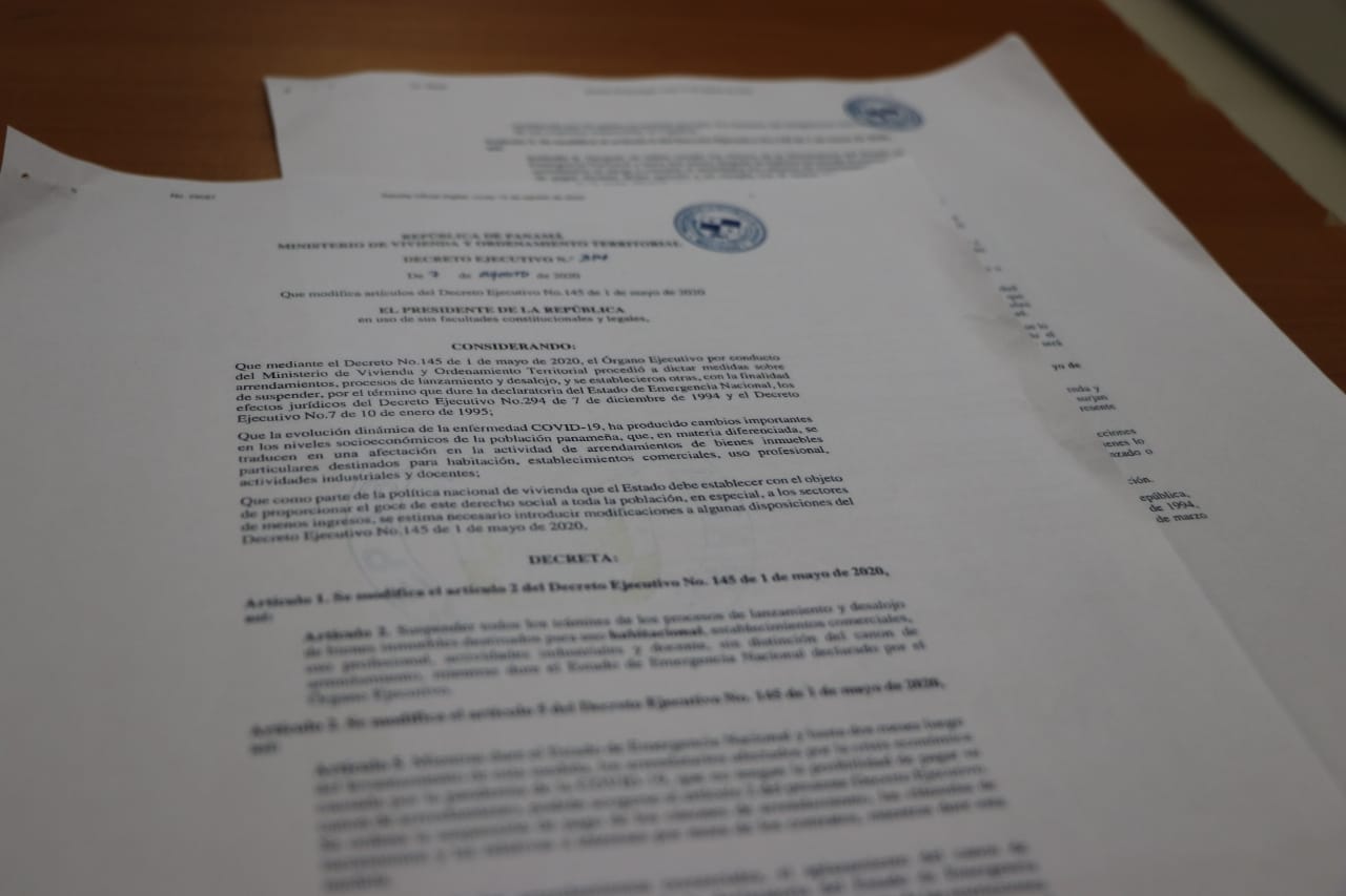 Panamá, 10 de agosto de 2020. El Gobierno promulgó un decreto que modifica la norma que suspende desalojos y lanzamientos, aclarando artículos para los arrendatarios que sean afectados por la Covid-19, los arrendamientos comerciales y la opción de llevar ante la justicia ordinaria los casos por negarse a pagar los cánones de alquiler e incumplimiento del mutuo acuerdo.