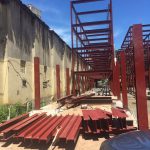 César Echeverría, de la Dirección de Ingeniería y Arquitectura en el Ministerio de Vivienda y Ordenamiento Territorial (Miviot), destacó que en la obra se realizan trabajos de soldadura para la estructura de viga H, con lo que se busca terminar la estructura y continuar con las labores de la losa metal para armar y vaciar.