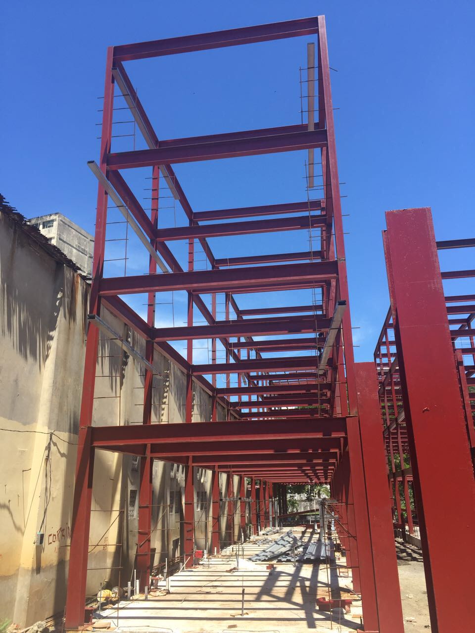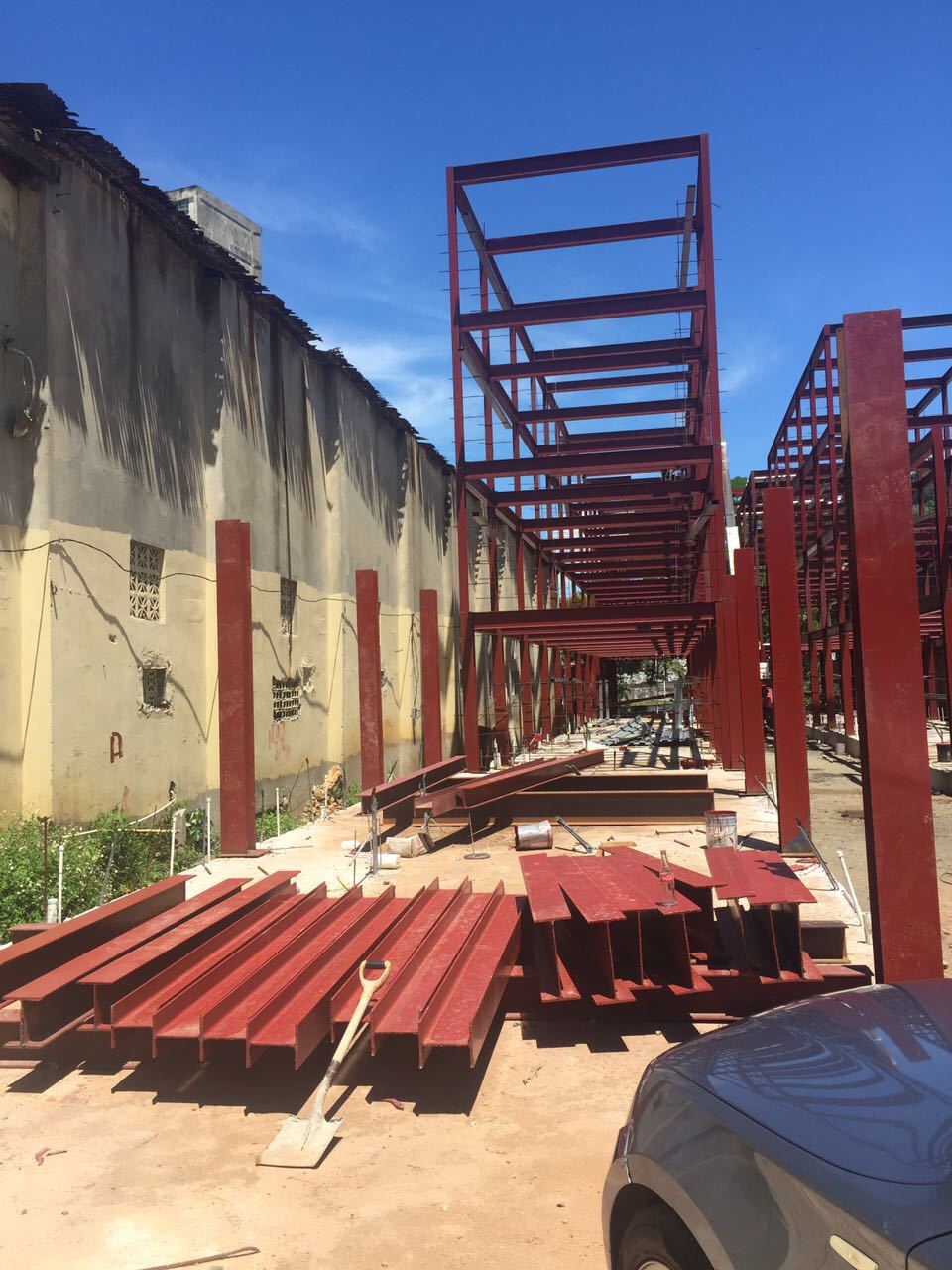 César Echeverría, de la Dirección de Ingeniería y Arquitectura en el Ministerio de Vivienda y Ordenamiento Territorial (Miviot), destacó que en la obra se realizan trabajos de soldadura para la estructura de viga H, con lo que se busca terminar la estructura y continuar con las labores de la losa metal para armar y vaciar.
