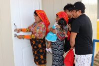 Familia de la pequeña Naisha, una de las primeras en reasentarse en Isberyala