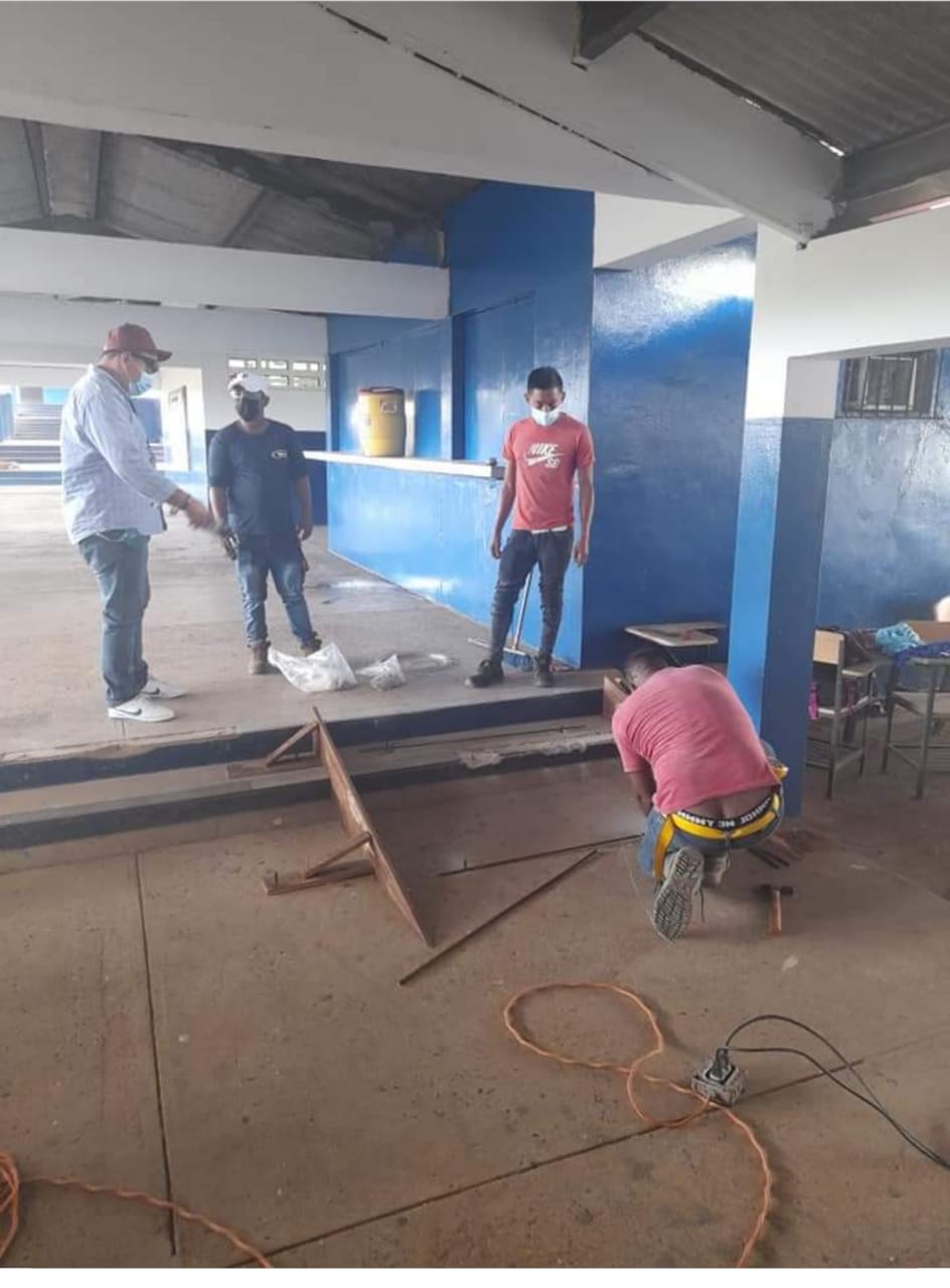 Panamá, 25 de febrero de 2021. Cuadrillas del Ministerio de Vivienda y Ordenamiento Territorial (Miviot) de Panamá Oeste realizan adecuaciones a las escuelas que fueron inspeccionadas y seleccionadas por una comisión interinstitucional, como centros de vacunación en el distrito de Arraiján.