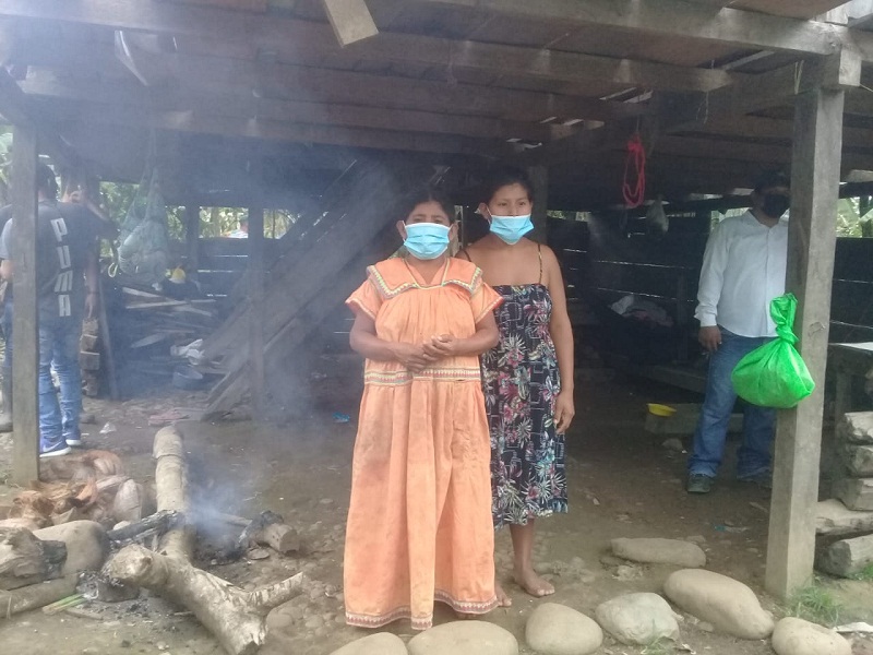 Panamá, 24 de junio de 2021. El equipo técnico y social del Ministerio de Vivienda y Ordenamiento Territorial (Miviot) en la comarca Ngäbe Buglé se trasladó hasta la apartada comunidad de Alemán, en el corregimiento cabecera y distrito de Kankintú, donde levantó el informe social a la familia de Celia Ábrego, que vive en extrema pobreza, para brindarle una respuesta habitacional.