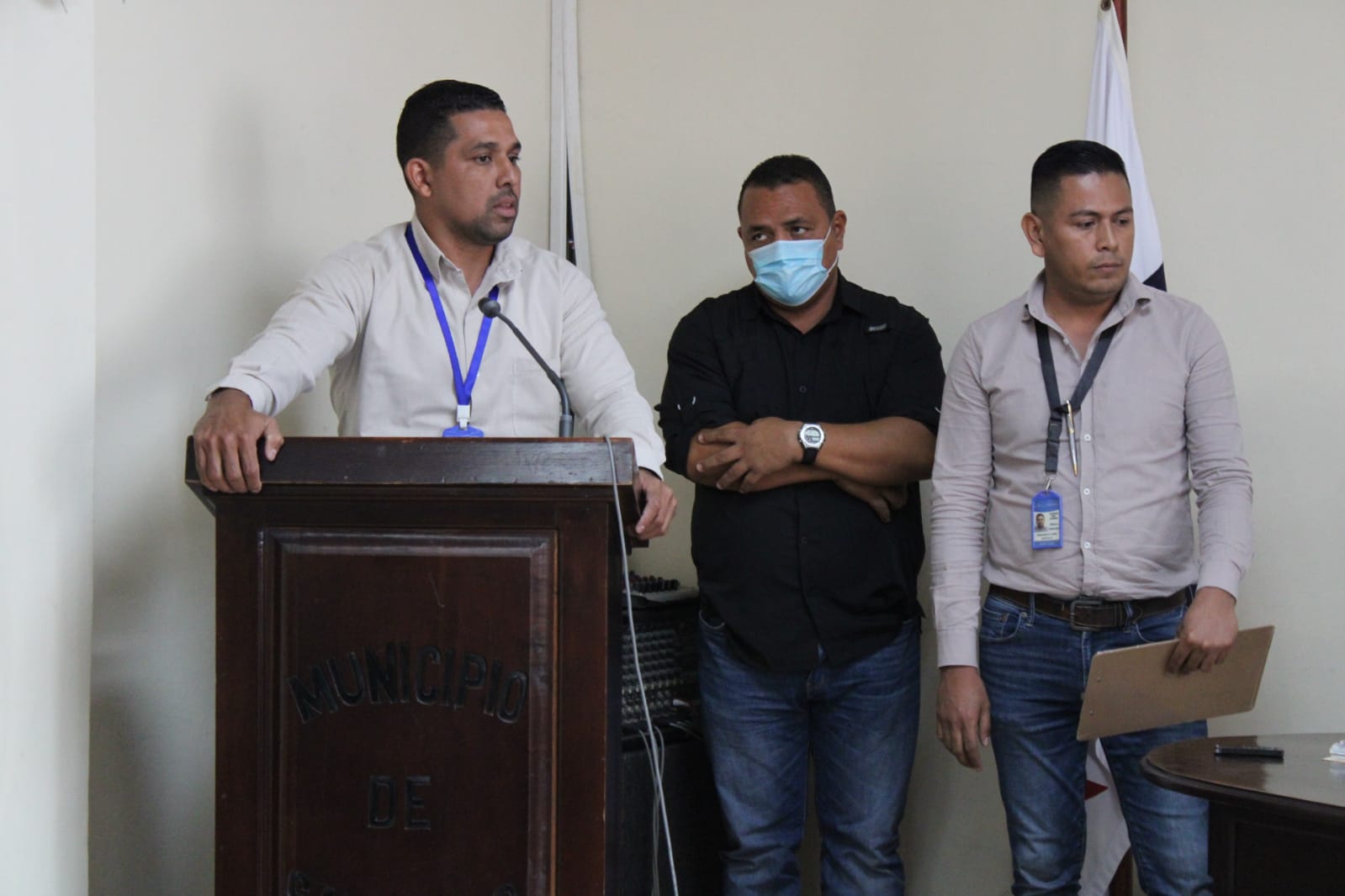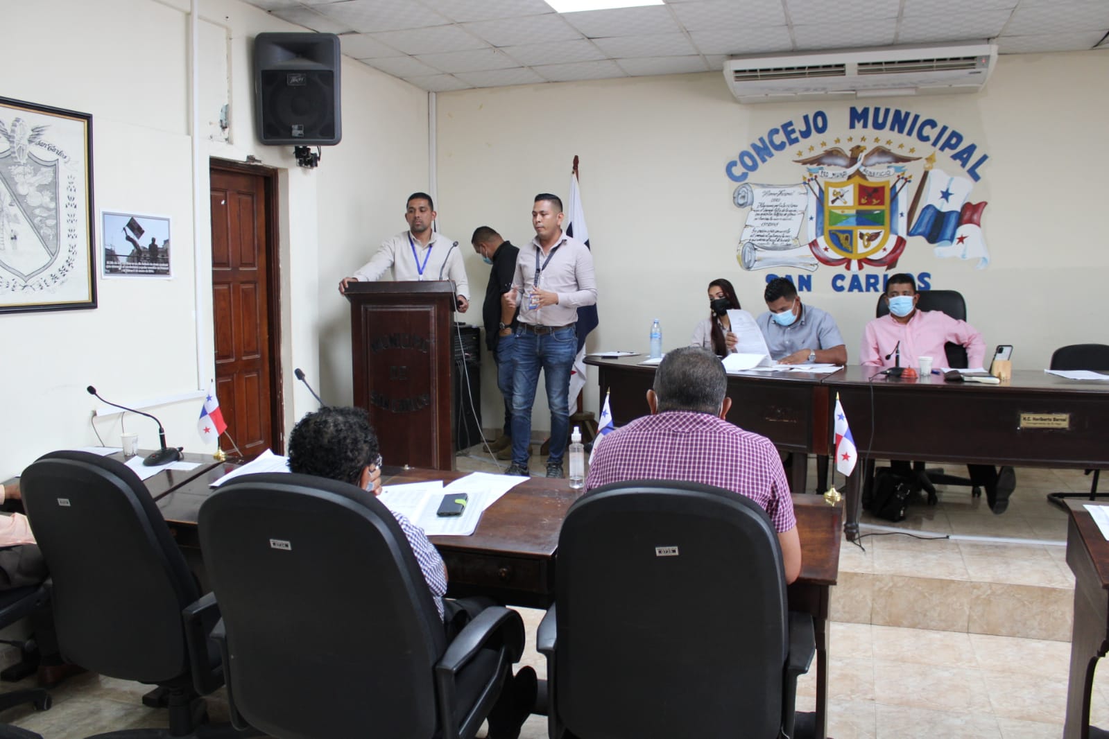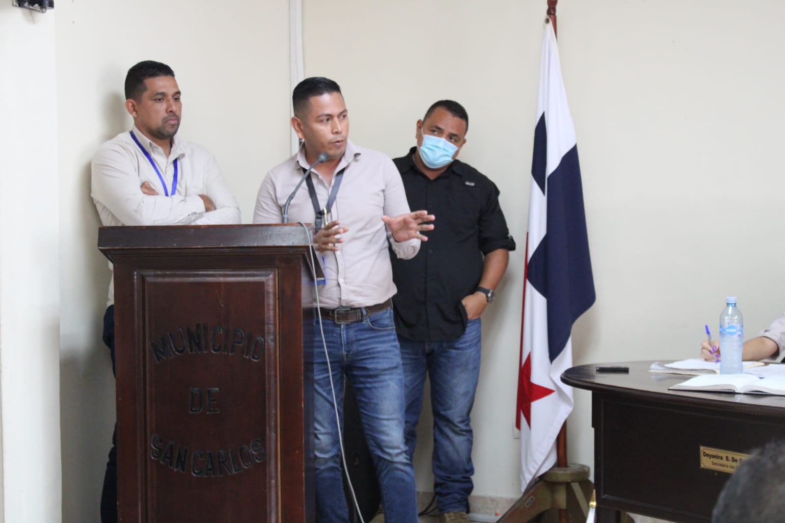 Bill Espinosa, director regional, junto a su equipo de trabajo, durante la sesión del Consejo Municipal del distrito de San Carlos, sustentó un informe del contrato 73-16, adjudicado a la empresa Consorcio Rodarci, S.A. encargada de las construcciones de las casas.