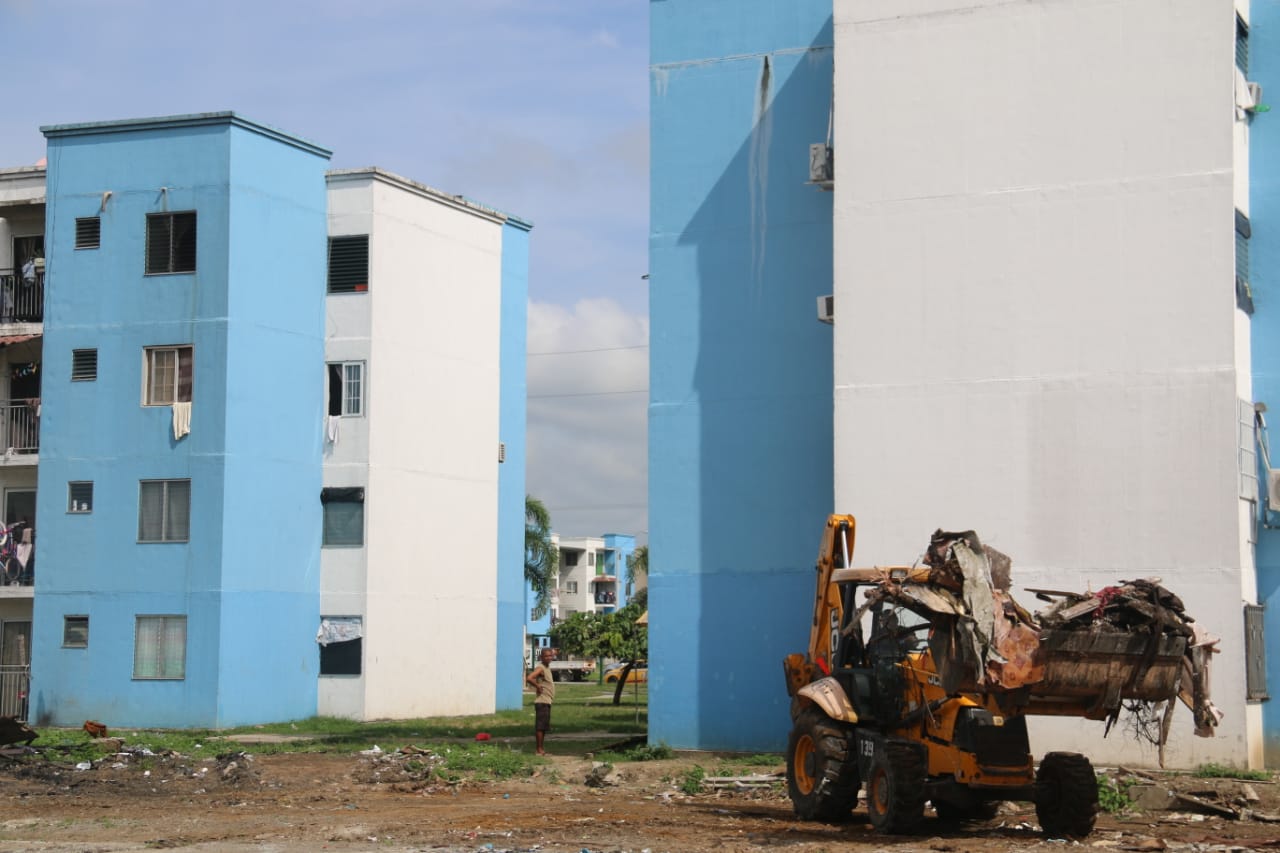 Un equipo conformado por trabajadoras sociales, operadores de equipo pesado y cuadrillas del programa Techos de Esperanza del Ministerio de Vivienda y Ordenamiento Territorial (Miviot) llevaron a cabo una jornada de limpieza en el sector de Nuevo Amanecer, corregimiento de Curundú, a fin de remover los escombros tras el incendio registrado en días pasados.