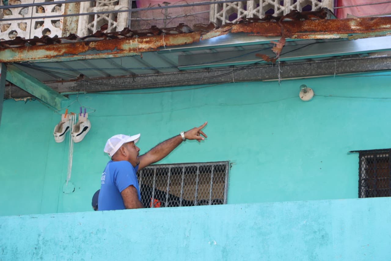 Euclides Olmedo, residente del edificio Santa Rita, se siente muy conforme con el comienzo de los trabajos de las mejoras y reparaciones, porque las estructuras presentaban escaleras en mal estado, techos con óxidos y huecos, además hubo un desplome de un balcón.